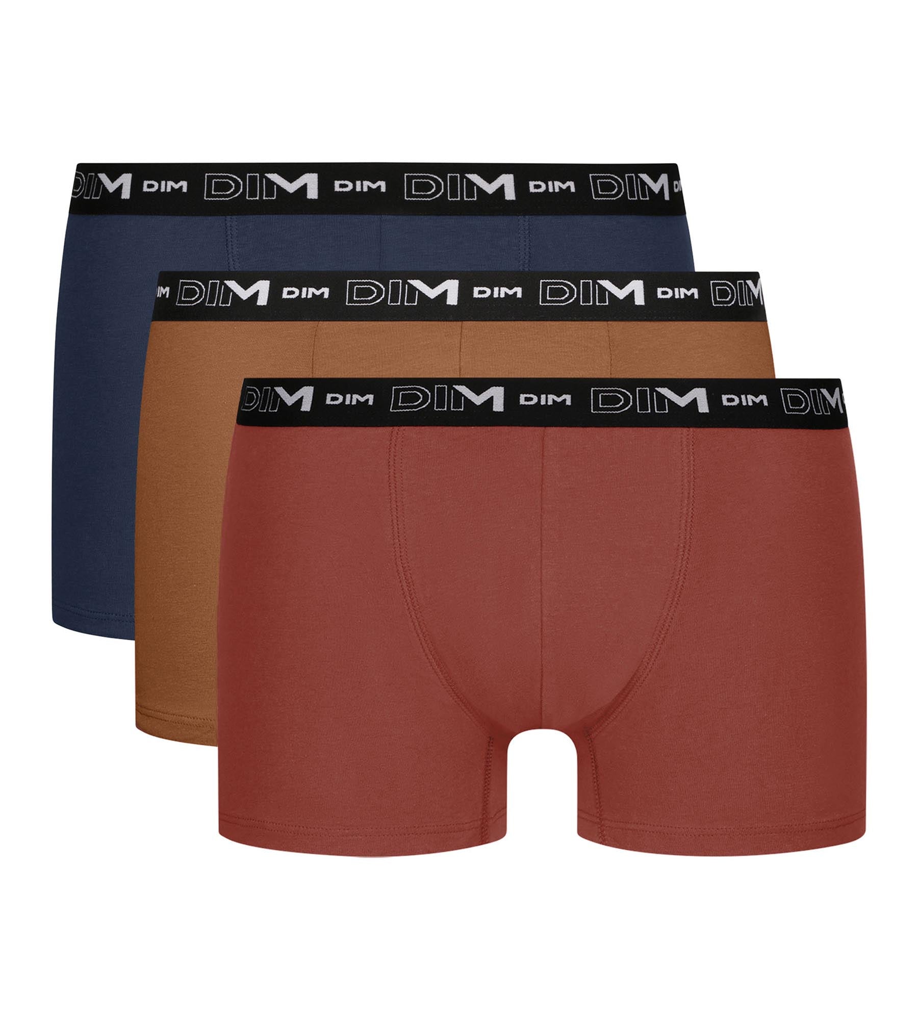 Add a touch of colour to your lingerie with this pack of 3 Dim Cotton Stretch men’s boxers in Coral, Ochre and Nocturne.