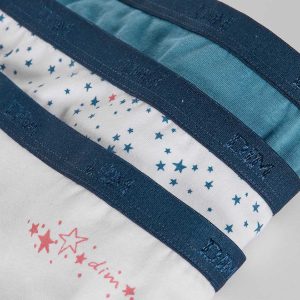 Pack of 3 girls’ White Blue Les Pockets stretch cotton knickers with a star pattern