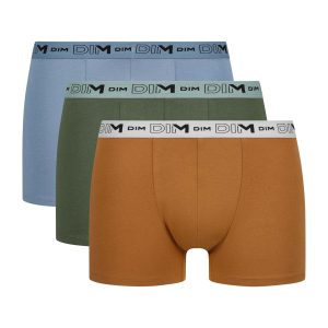 Expand your collection with the pack of 3 organic Stretch Cotton dim boxers in Grey, Blue, Black or Greige, Blue, Khaki.