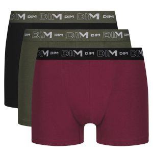 Bring contrast and character to your lingerie with the Black, Khaki, Red Dim Coton Stretch men’s boxer Pack of 3!