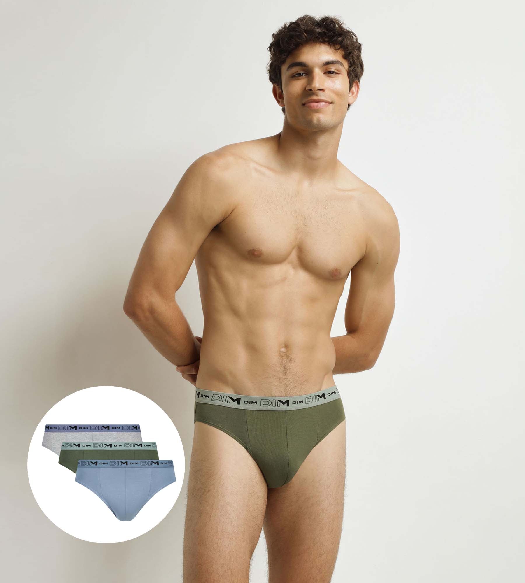 This Pack of Dim men’s briefs combines good support, a pleasant material and easy-to-wear colours. Made from organic stretch cotton, each brief ensures comfort and freedom of movement all day long. Thanks to their close-fitting cut, these men’s briefs are discreet under all types of clothing, with no extra fabric. The trio is made up of a pair of tone-on-tone blue briefs, a pair of grey briefs with a contrasting blue waistband and a pair of khaki briefs with a green waistband. A practical choice to complete your Dim men’s briefs collection with effective basics.