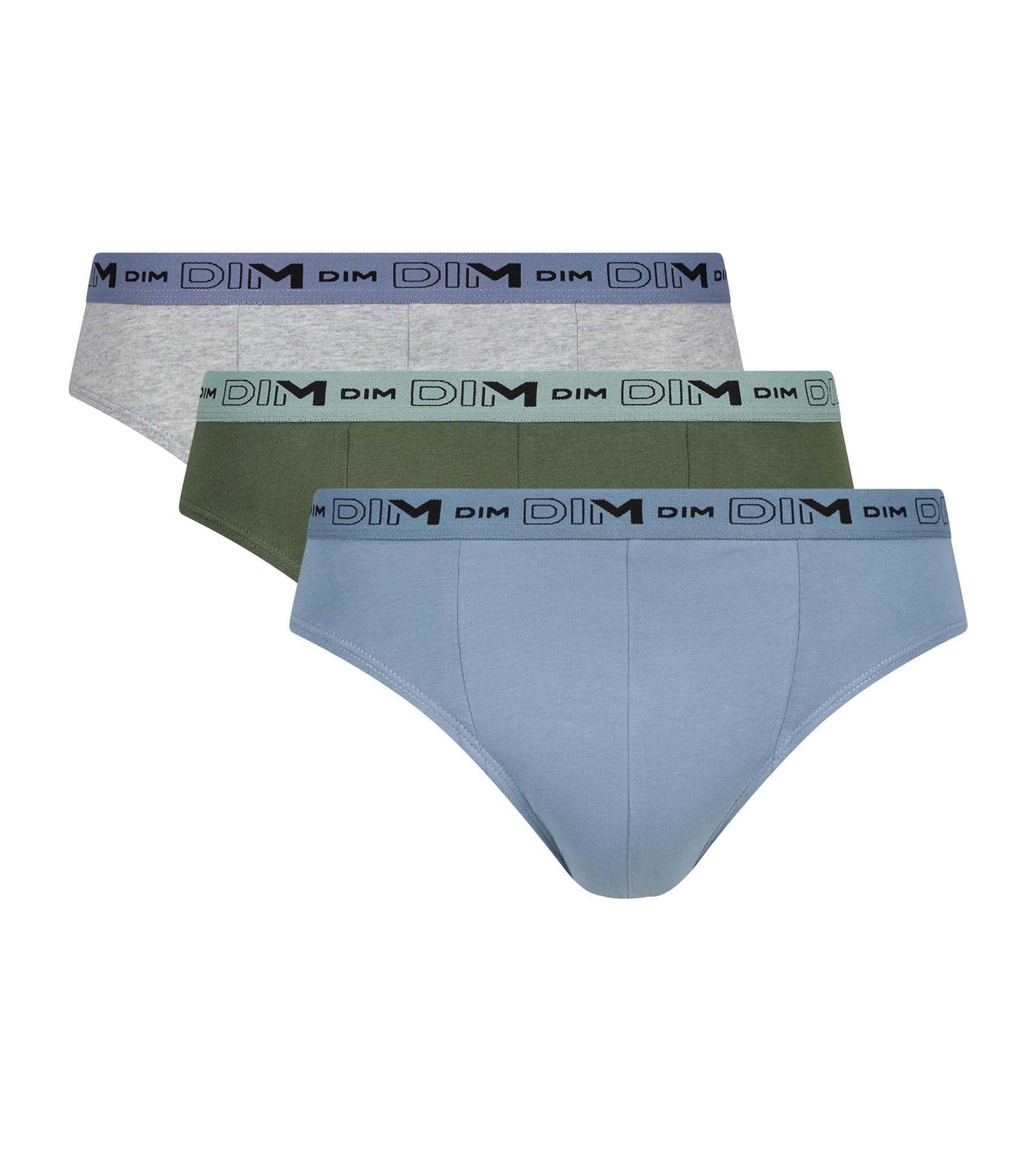 Bet on natural, discreet comfort with this pack of 3 Dim Men’s Organic Stretch Cotton briefs in Blue, Grey and Khaki!