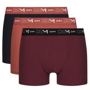 Adopt a warm, sober style with the Dim Coton Stretch men’s 3-pack of boxer shorts in Black, Terracotta and Chocolate Brown hues.