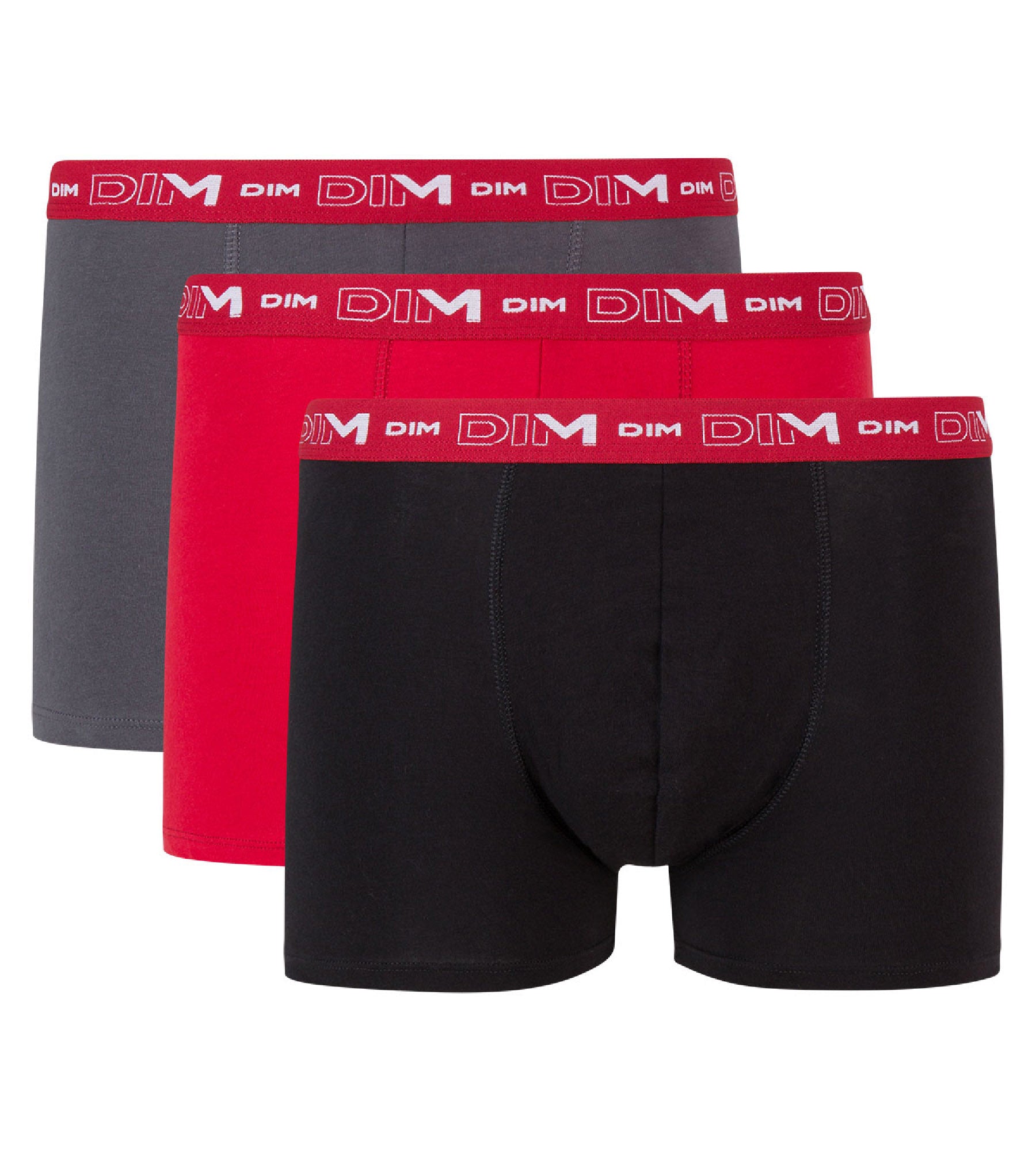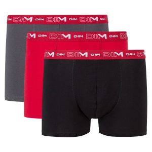 Pack of 3 pairs of Coton Stretch grey, chilli red and black trunks