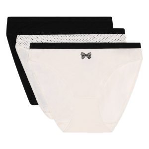 You’ll love the cutesy black bow print in this trio of cotton bikini knickers.