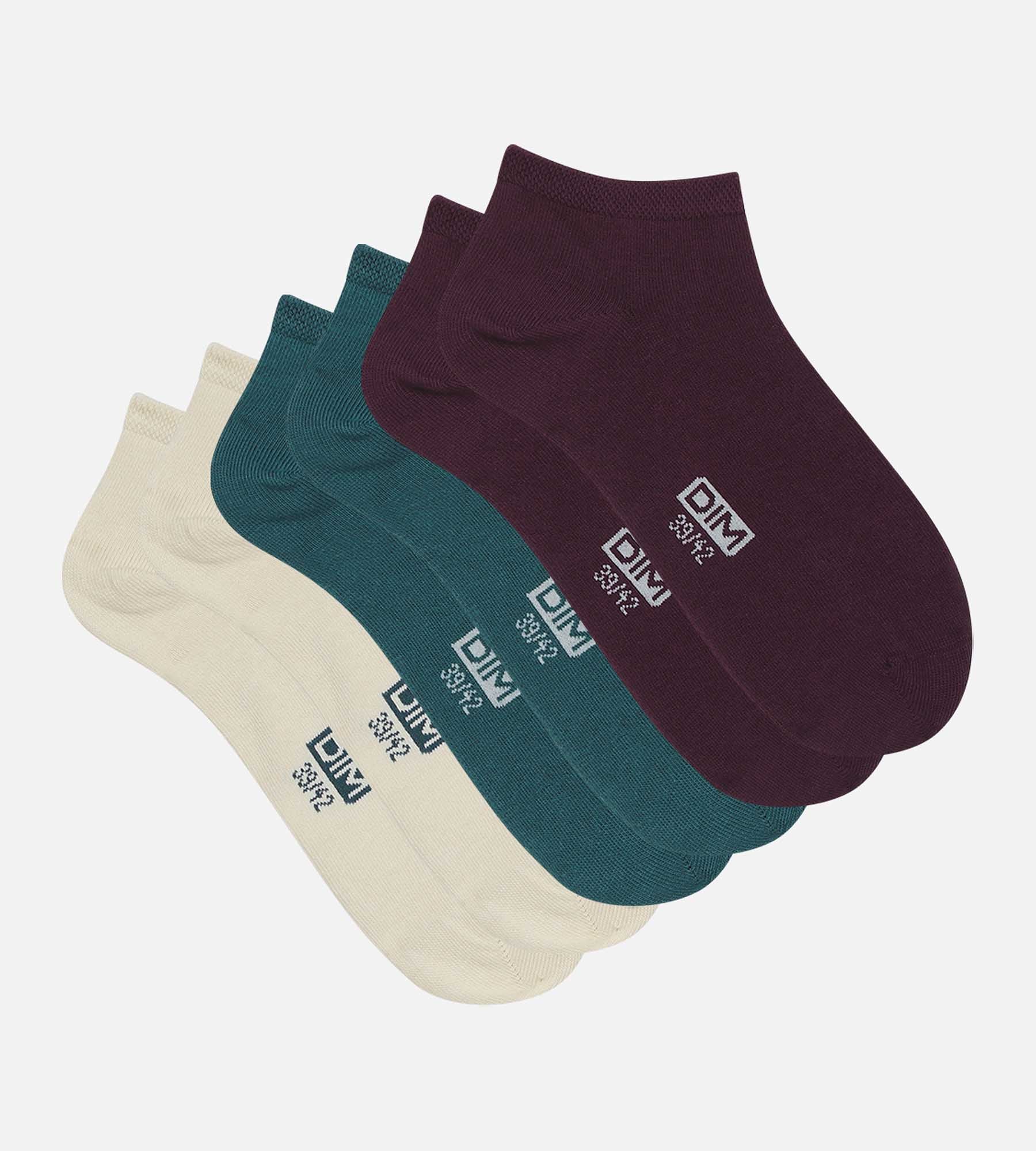Adopt a trendy style with the Dim Coton Pack of 3 pairs of duck blue, intense purple and cream men’s socks!