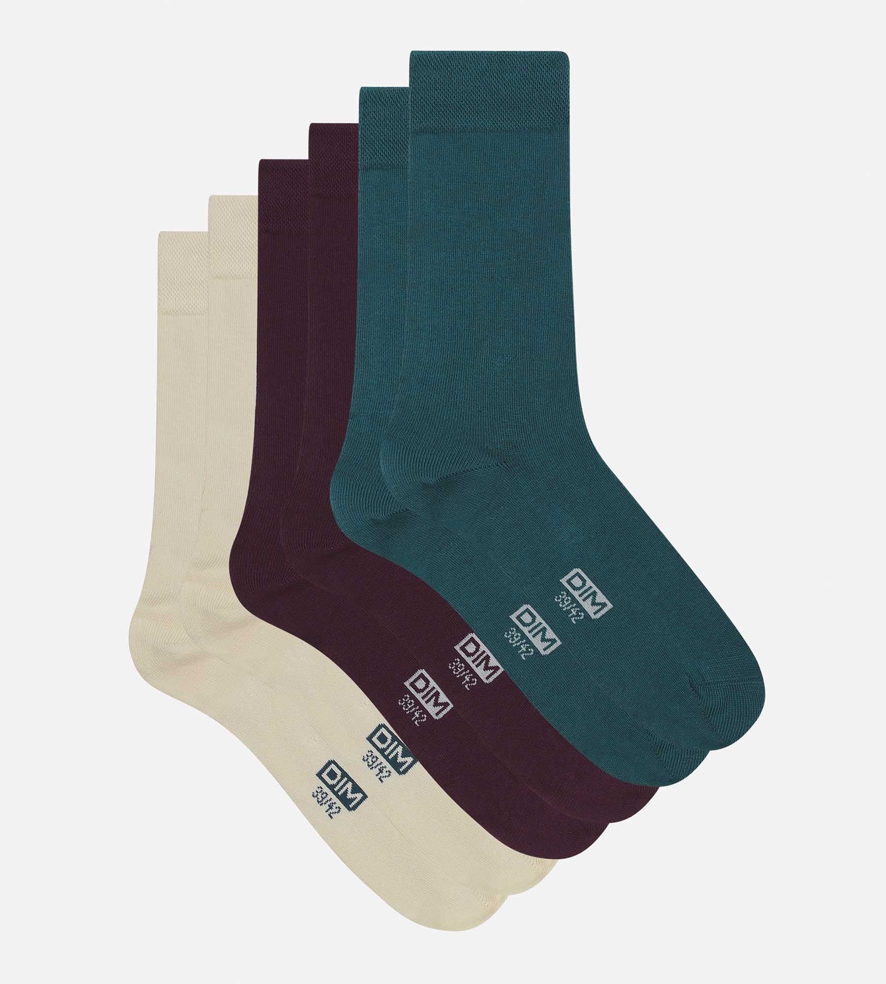 Opt for a stylish and comfortable look with the 3-pack of Dim men’s socks in duck blue, purple and cream cotton!
