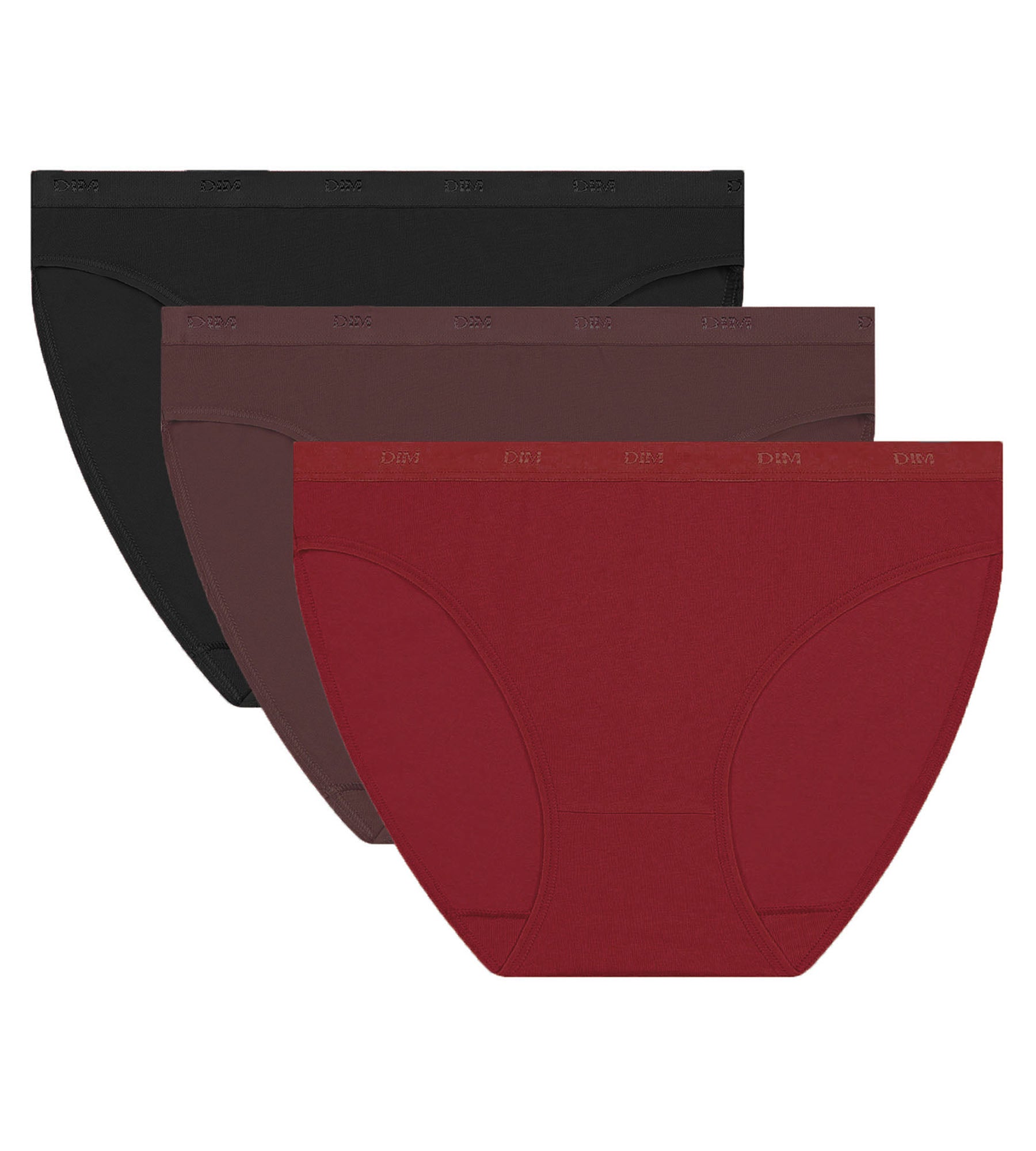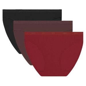 Crave for the assertive colours of the Les Pockets Ecodim Pack of 3 women’s knickers in Black, Red and Cocoa stretch cotton!