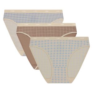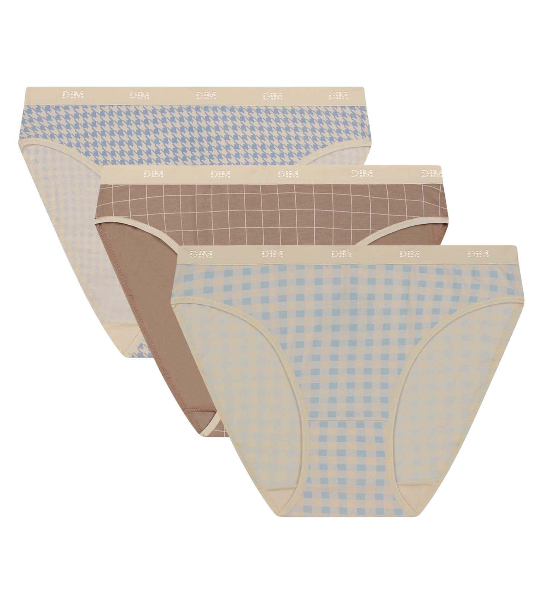 Pack of 3 Women’s Gingham Briefs Ecru Blue Beige Les Pockets
