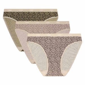 Pack of 3 women’s leopard print briefs Ecru Beige Les Pockets