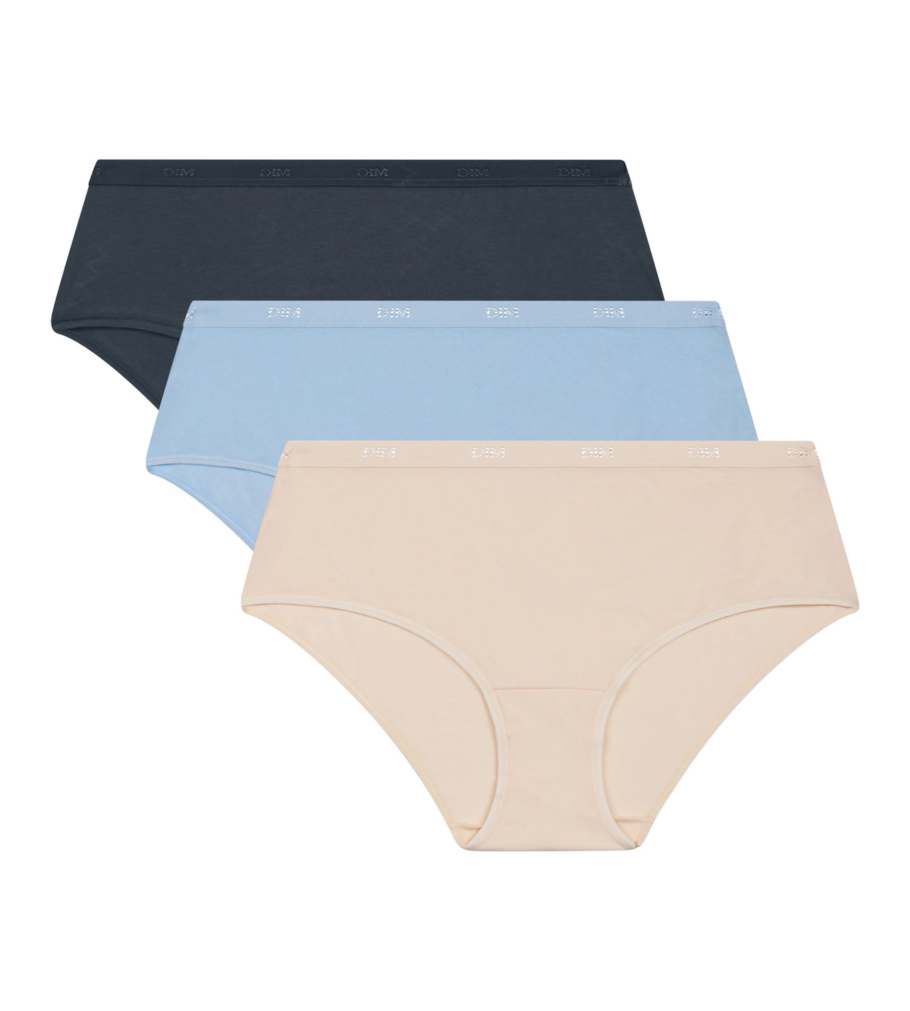 Pack of 3 women’s stretch cotton boxers Beige Blue Grey Les Pockets Ecodim