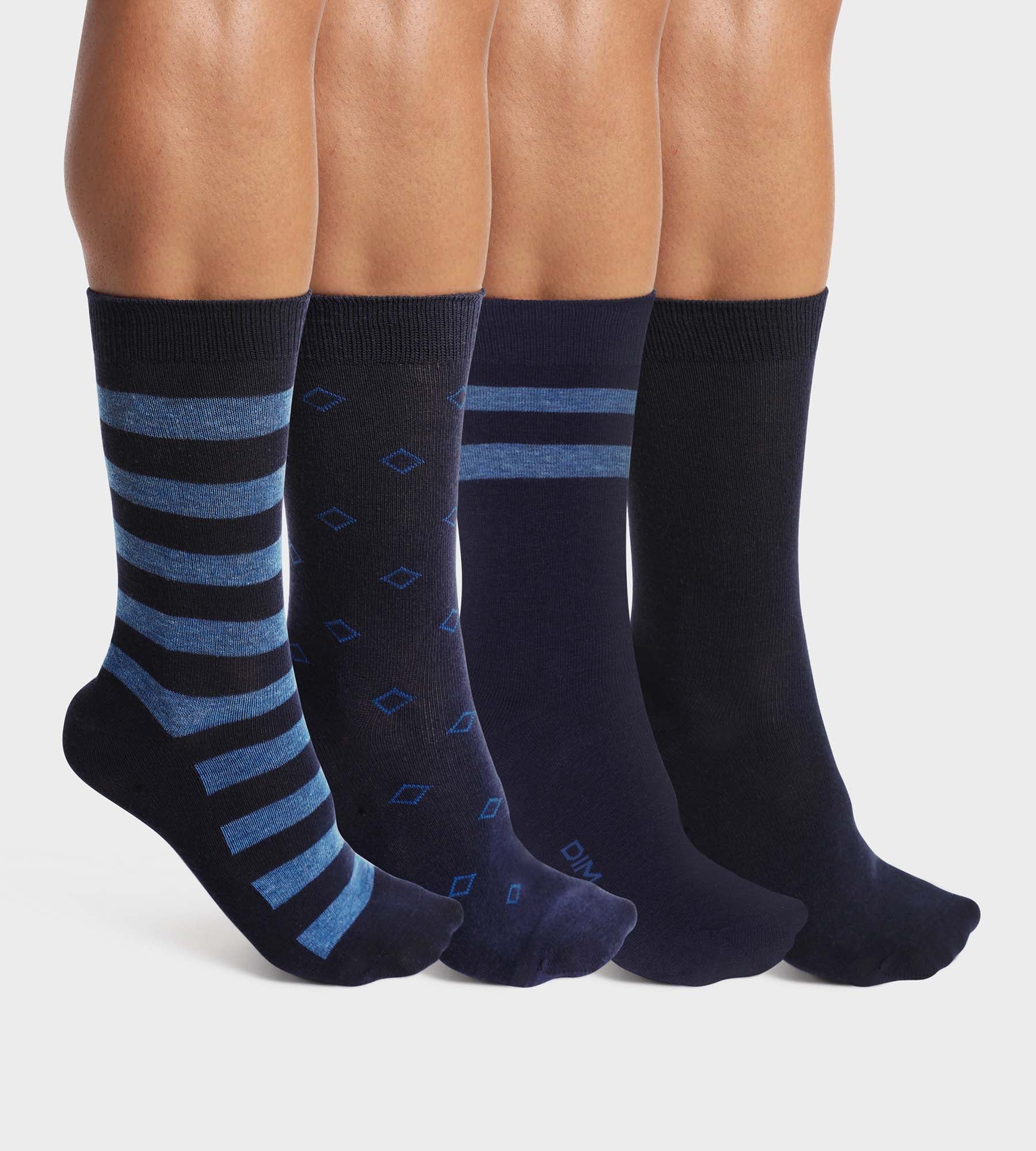 Pack of 4 pairs of men’s striped cotton socks in Navy EcoDim Style