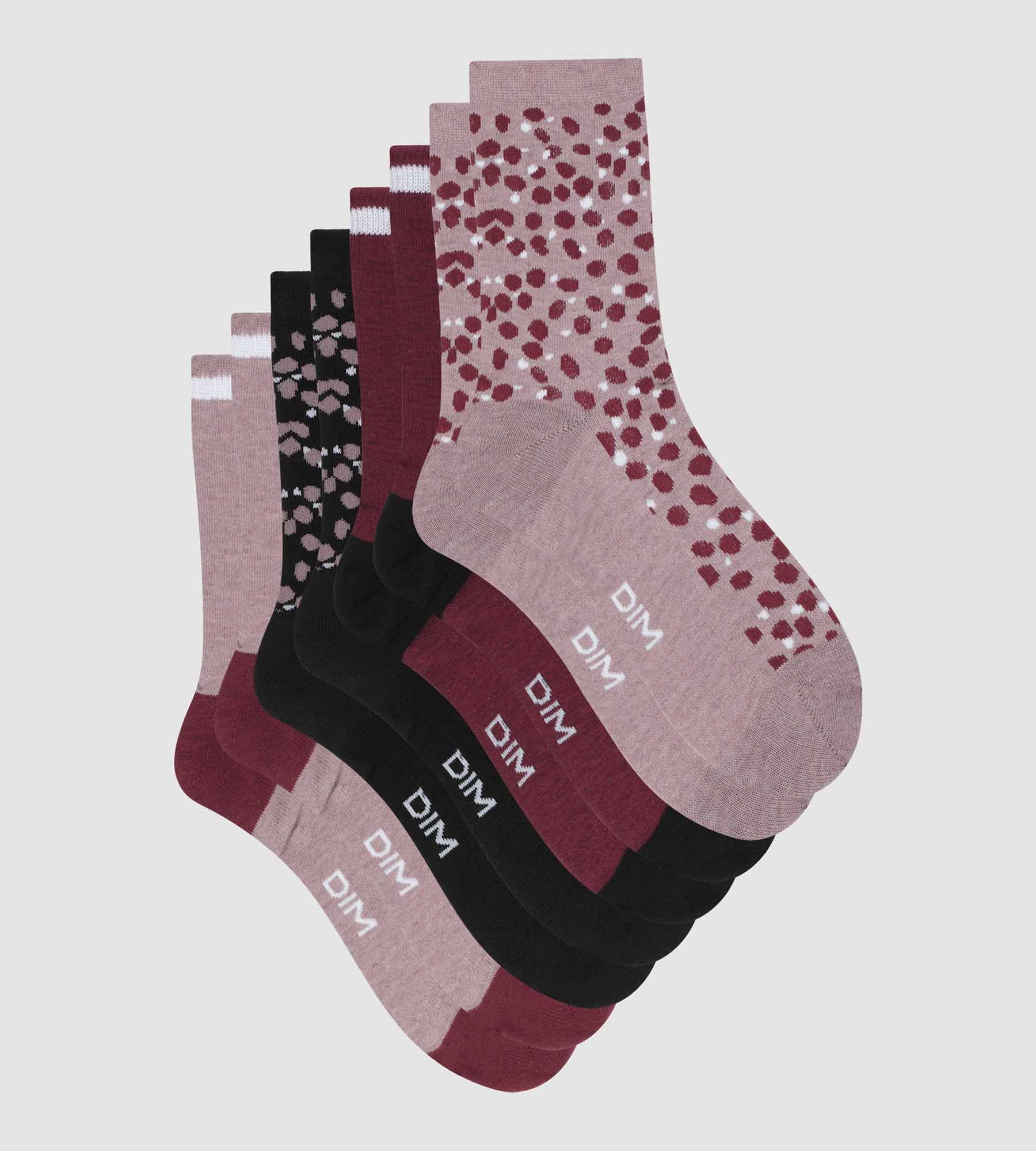 Pack of 4 pairs of women’s socks in Garnet Black with spots Ecodim Style