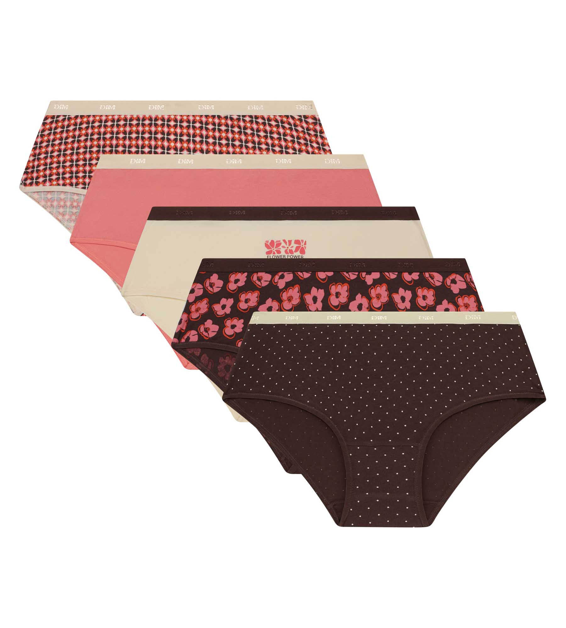 Pack of 5 retro pink and brown boxer shorts Les Pockets