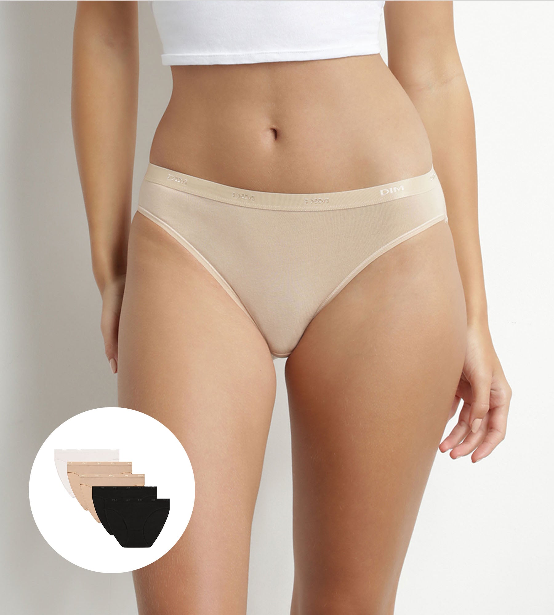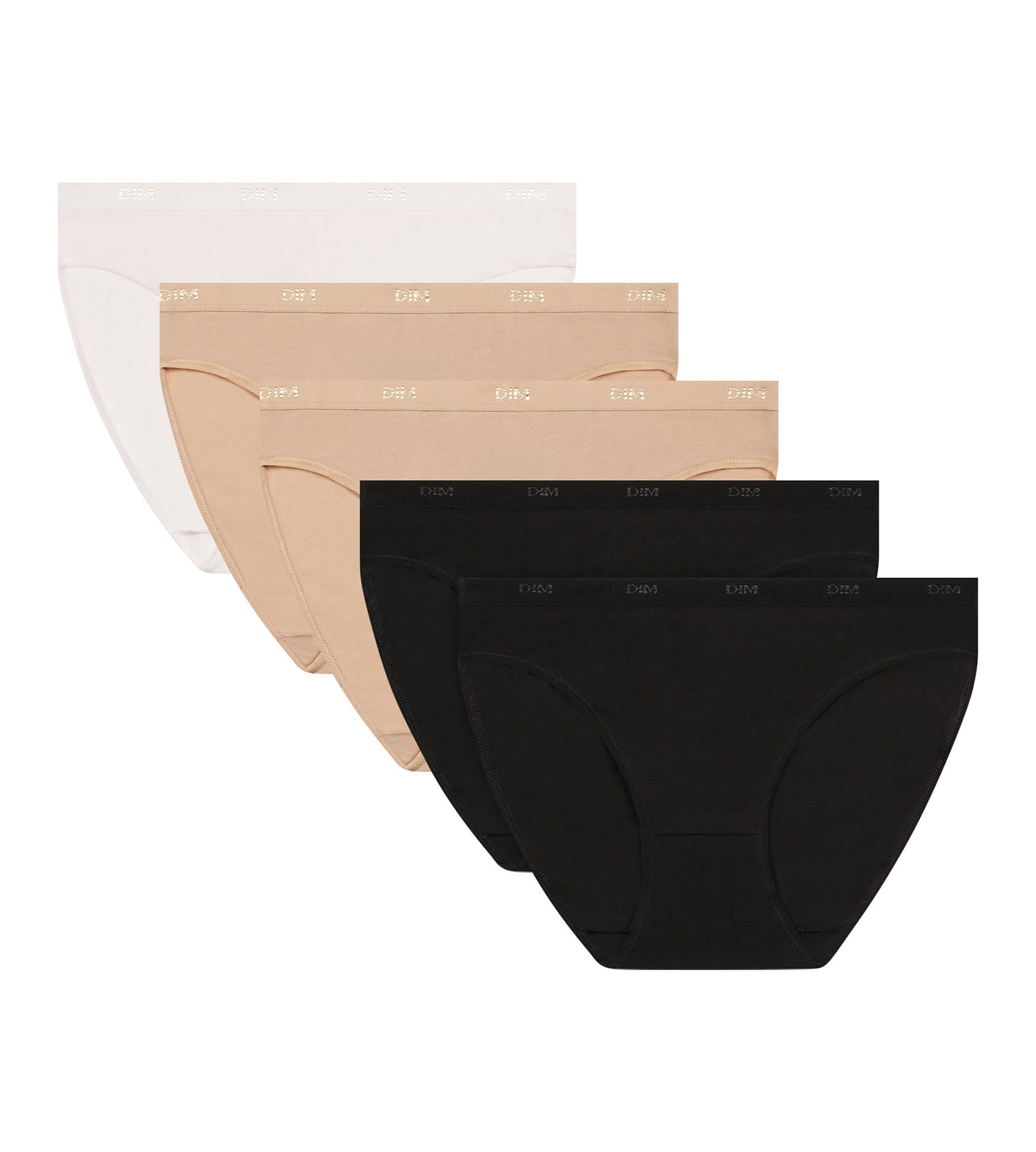 Pack of 5 stretch cotton knickers Black Nude White Les Pockets Ecodim