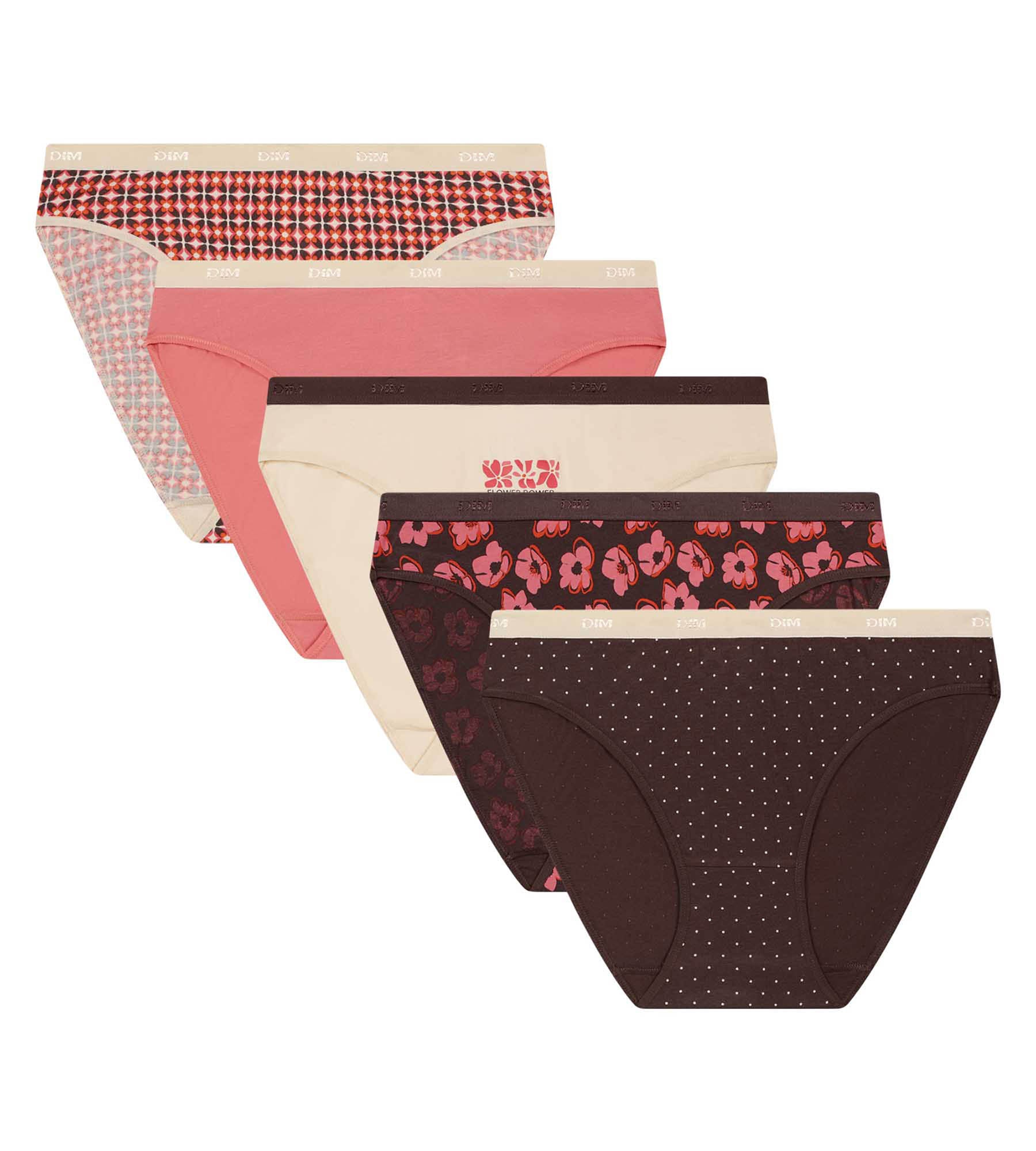 Fill up on comfort and whimsy with the Les Pockets Pack of 5 women’s panties from Dim in rétro patterns.