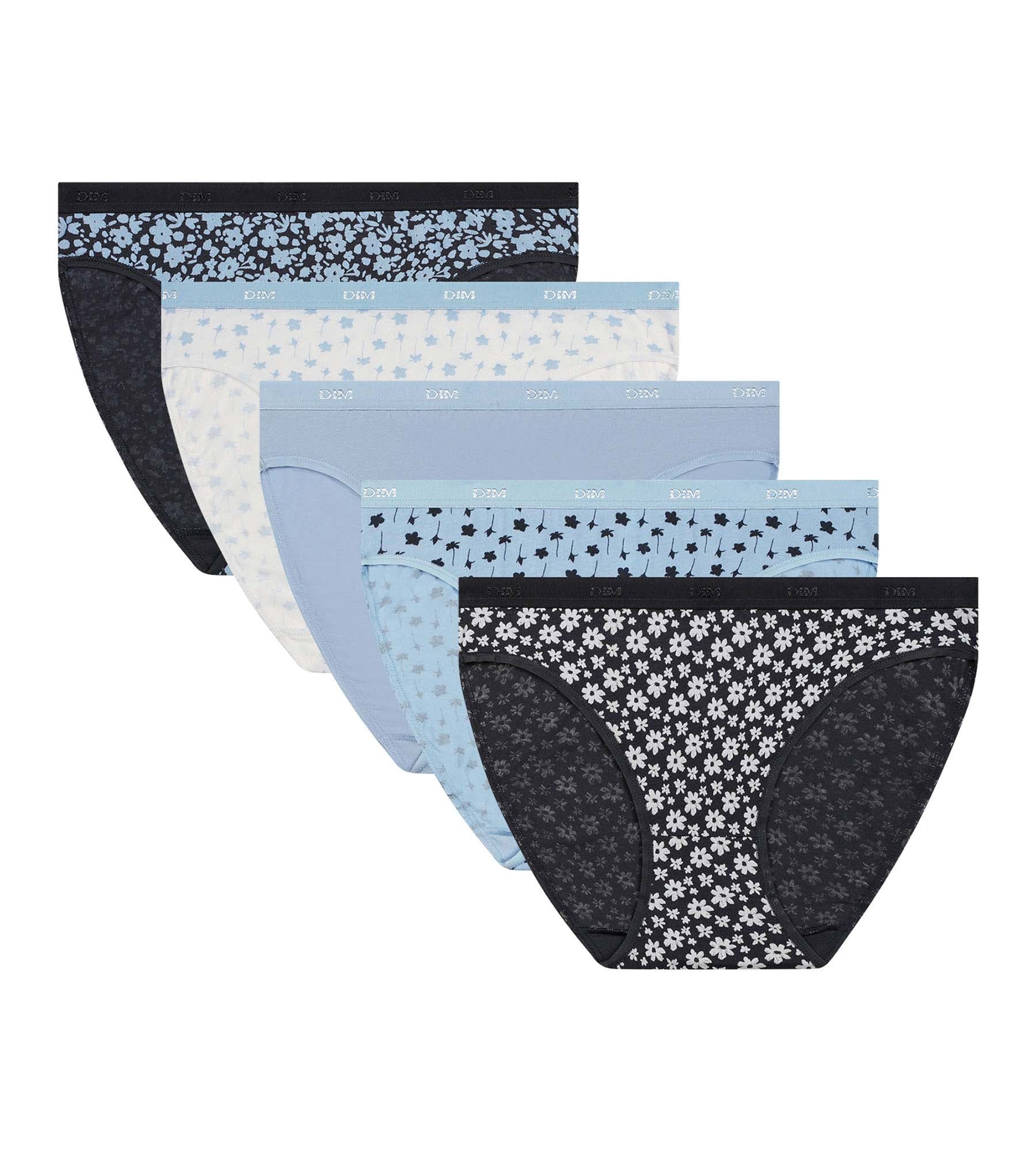 Comprising one plain blue panty and 4 black, blue and white liberty-print briefs, the Les Pockets Pack of 5 women’s panties adds a touch of freshness to your everyday life! Made from soft, stretchy cotton fabric, with a flat waistband and soft seams, Dim Pockets women’s panties are easy to wear every day!