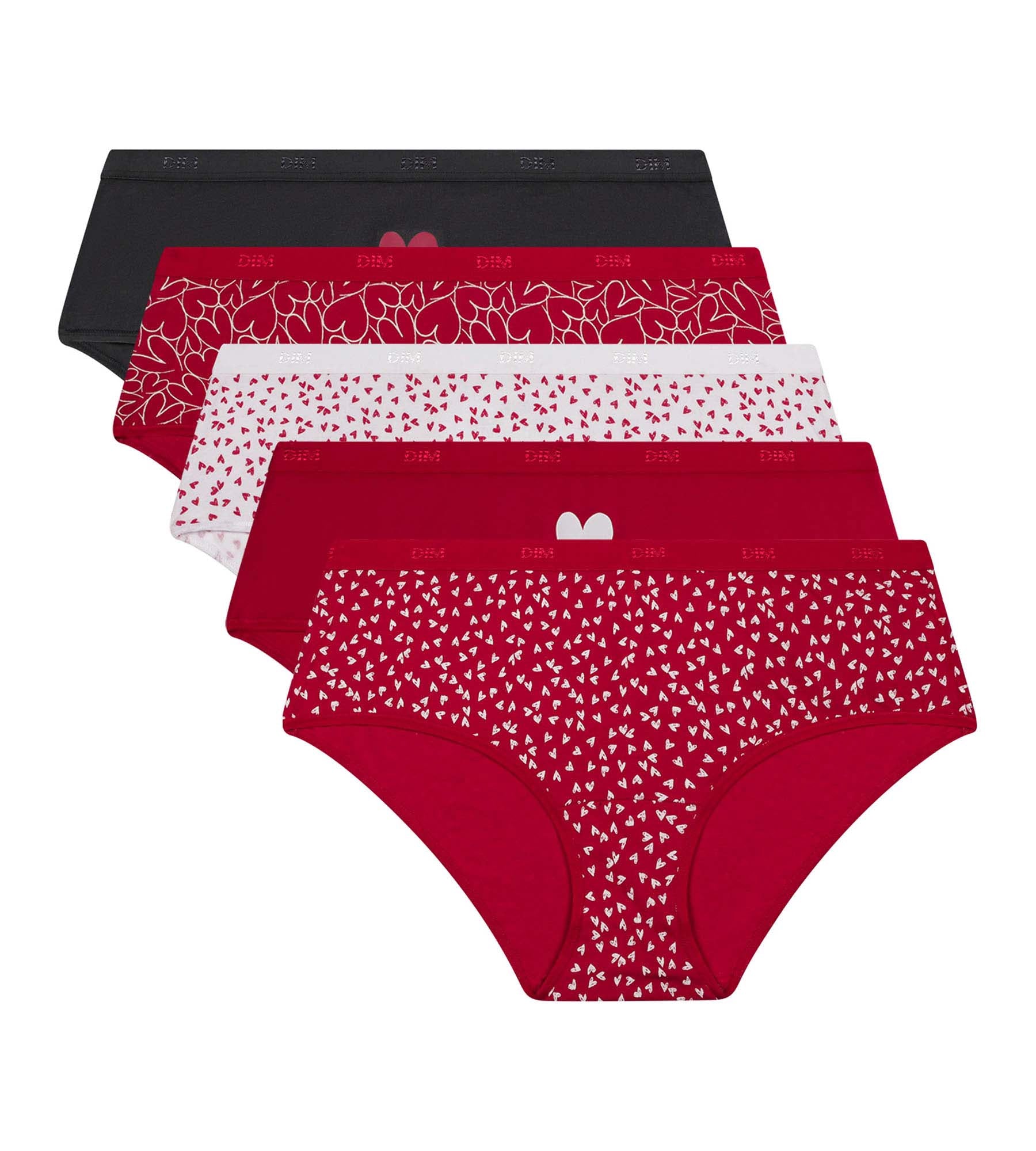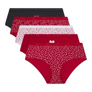 Pack of 5 women’s stretch cotton shorties with heart pattern Les Pockets