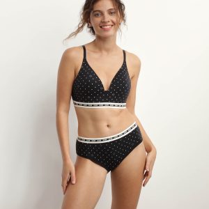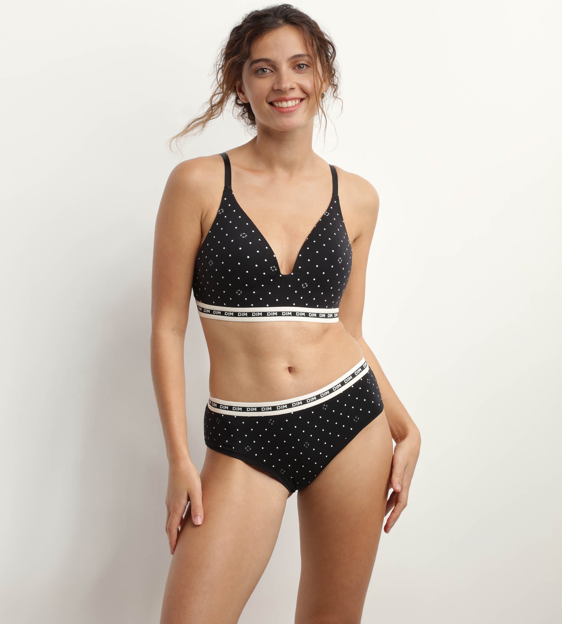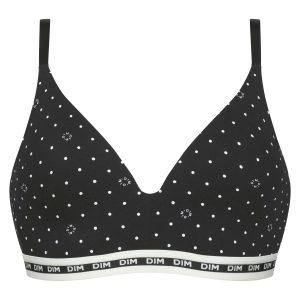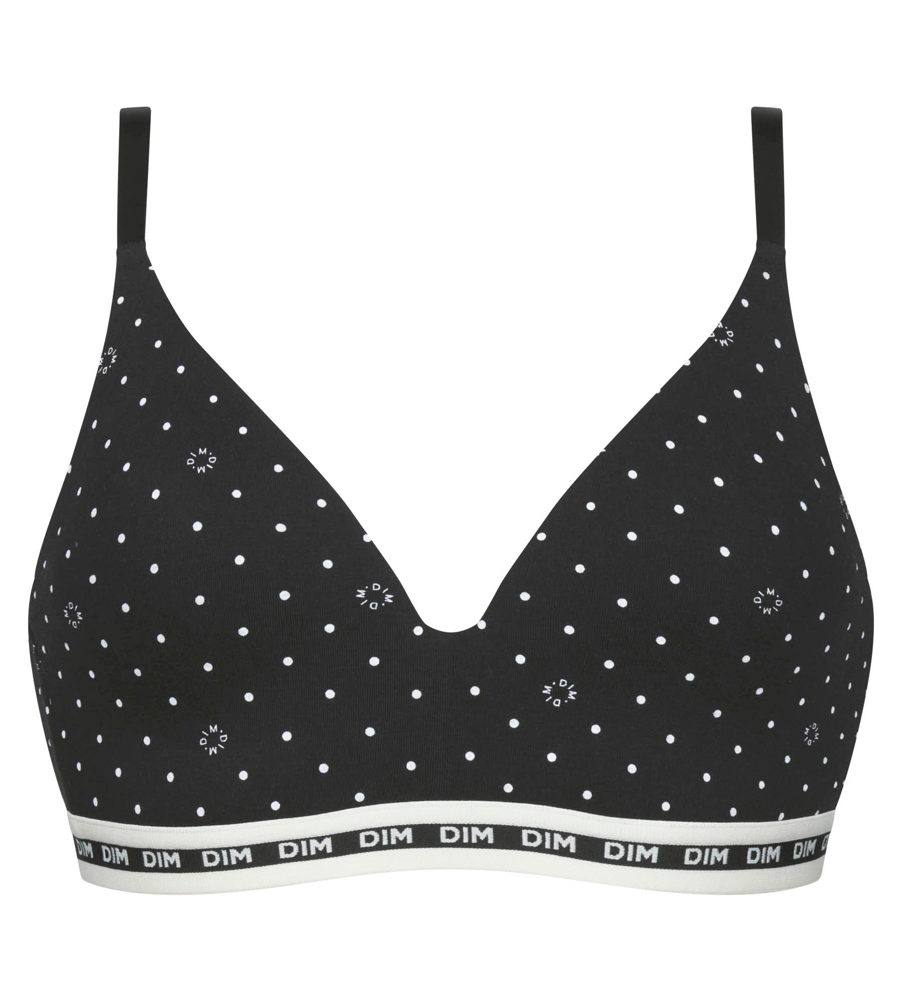wear the pin-up style with style thanks to our Dim Icon Essentiel triangle bra with molded cups wireless, in Black modal cotton and with a trendy polka dot pattern!