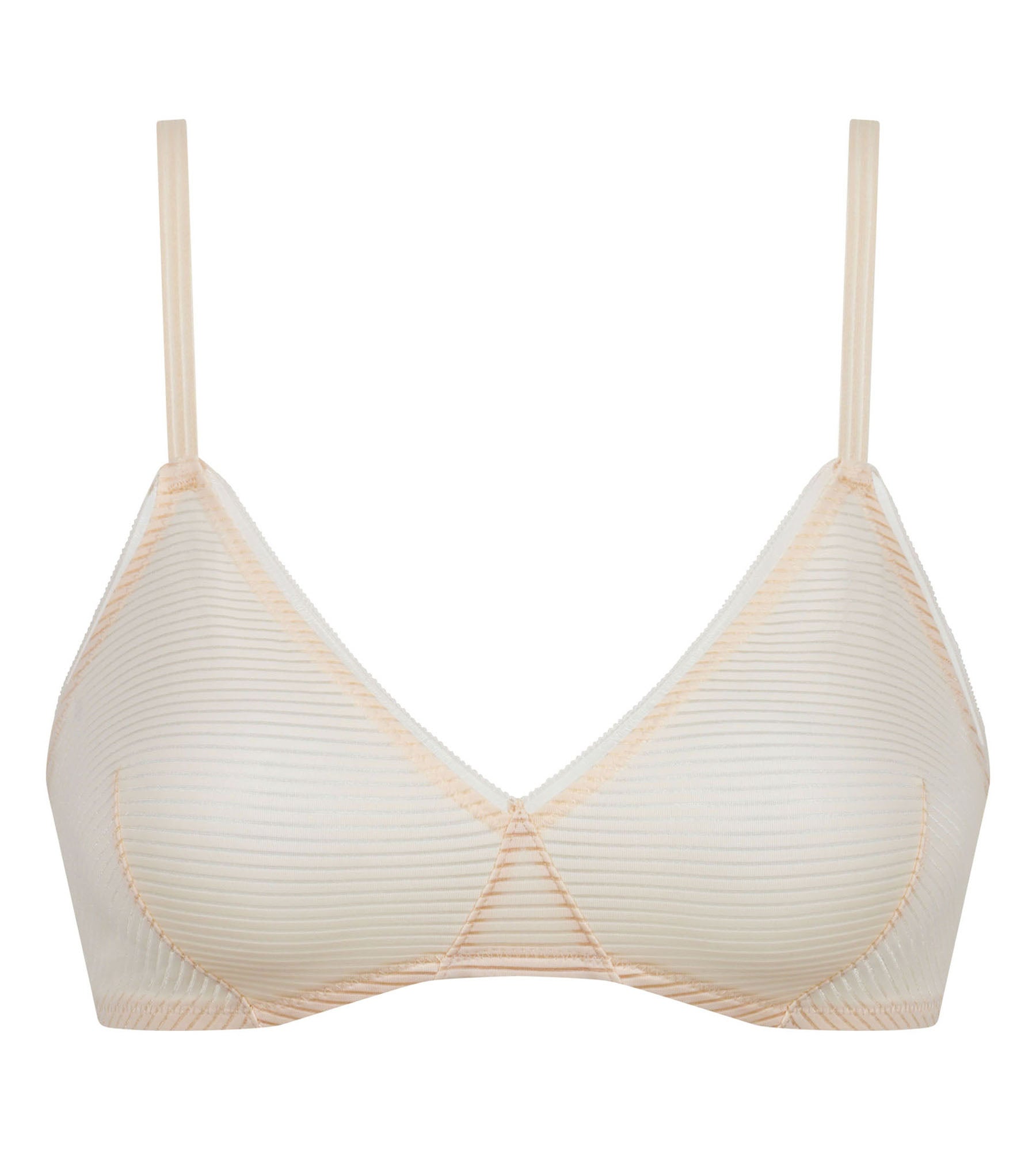 Light and glamorous, opt for the Rose Ballerine Dim x Ines de La Fressange wire-free triangle bra with refined stripes.