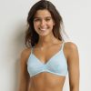 The Dim x Inès de La Fressange triangle bra is for those looking for lightweight support and a natural look. The fluid fabric features a subtle, modern openwork stripe pattern that plays with transparency without overdoing it. The triangle cut gently cups the bust, with a supple support adapted to smaller breasts. Designed for everyday wear, this non-wired bra offers everyday comfort, while remaining stylish thanks to its picot finish and worked straps.