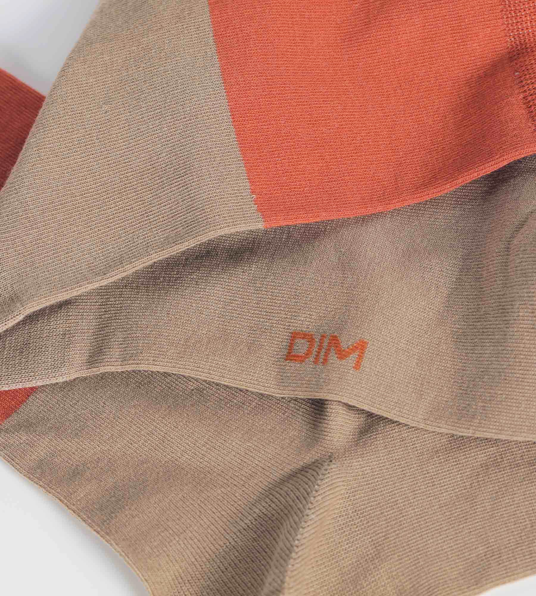 Combining style and comfort, Dim Mode men’s socks in premium combed cotton enhance your everyday looks with a sober touch of originality. The Praline and Mandarine color scheme is discreet when standing up, and dynamic when sitting down! A perfect combination of elegance and fashion for every day!