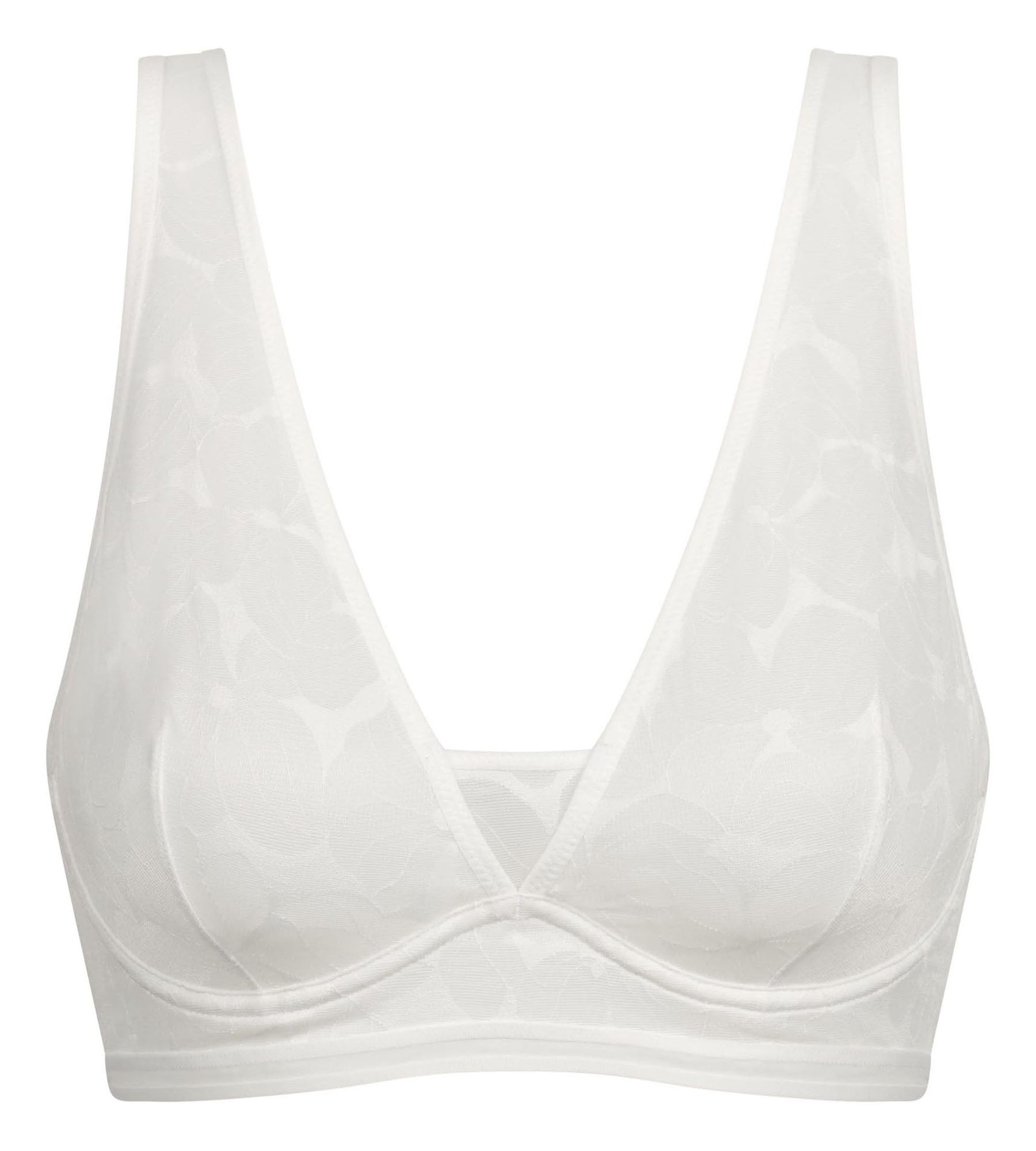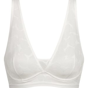 Combine comfort and elegance with the Dim Bloom underwired scarf bra in white floral lace.