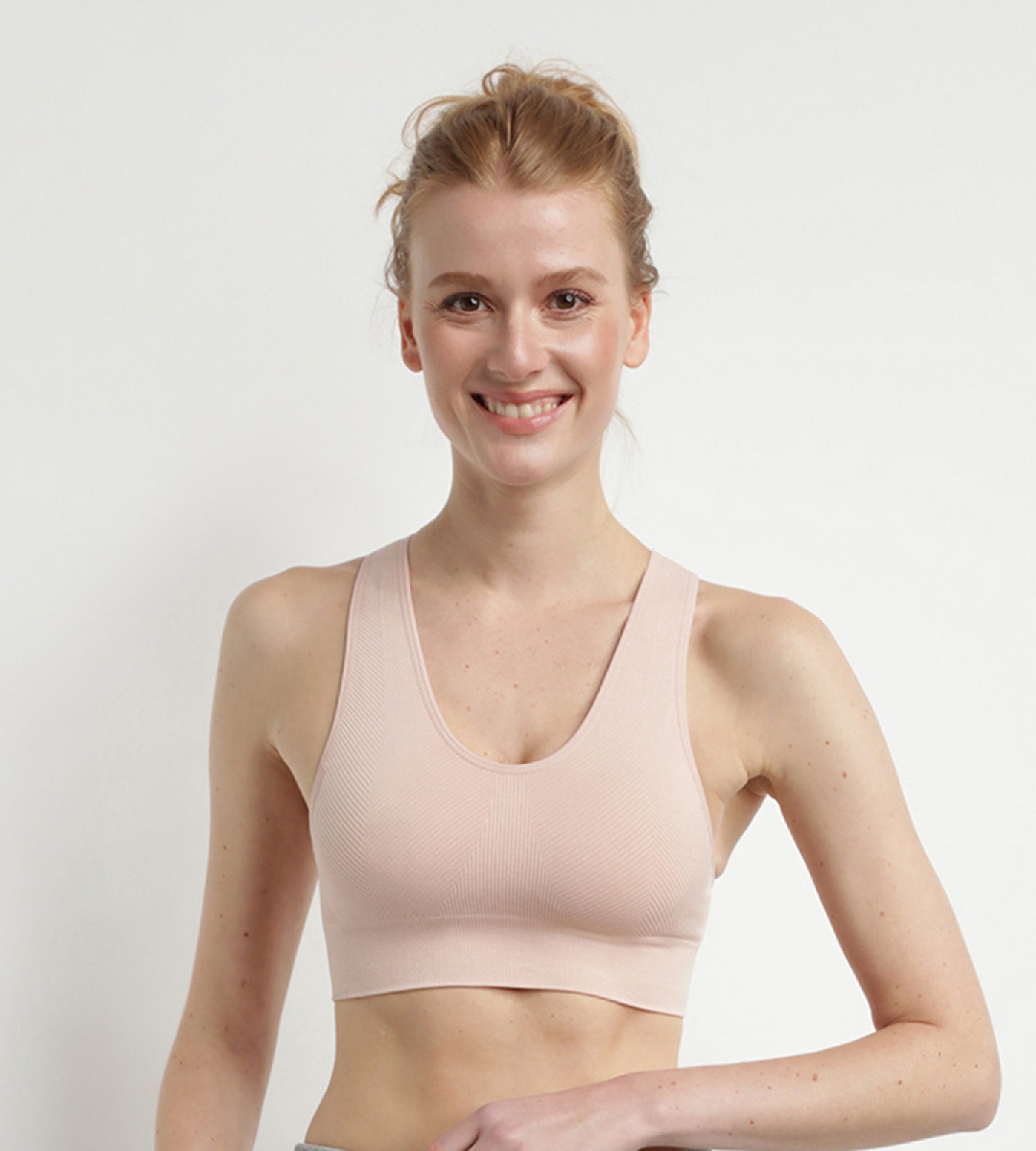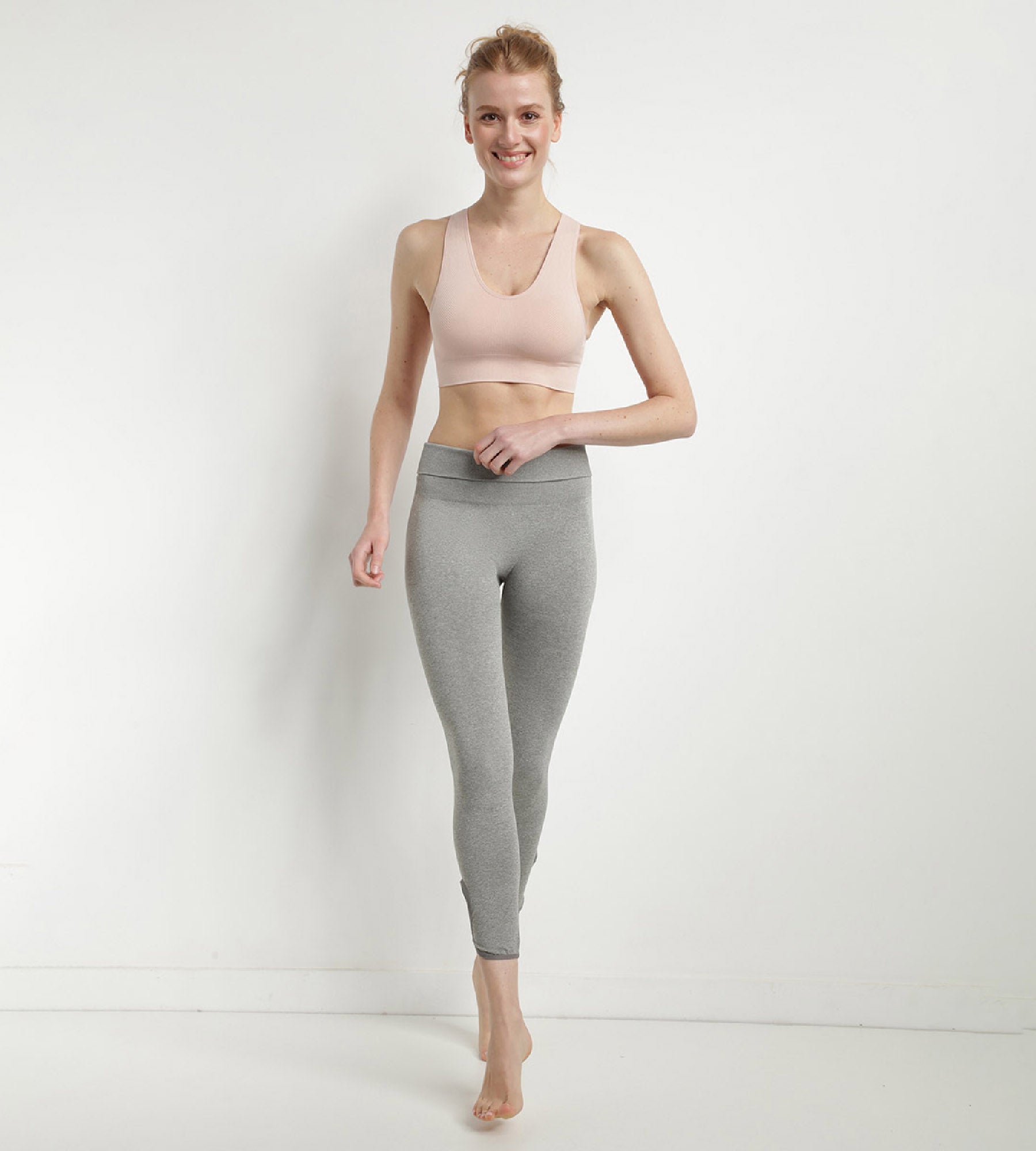 Opt for the Dim Sport almond pink mottled bra to accompany you during medium or high-impact activities. We love its freedom of movement and soft almond pink colour, which will go wonderfully with all your sportswear. Combine it with the Dim Sport pebble grey mottled high waist seamless leggings for a top outfit!