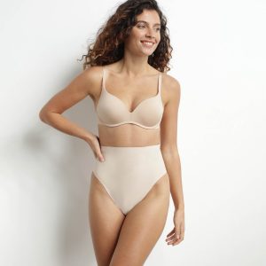 The DIM SILHOUETTE INVISIBLE high-waisted shaping thong sculpts your silhouette for a flat stomach effect, while remaining invisible under your clothes.