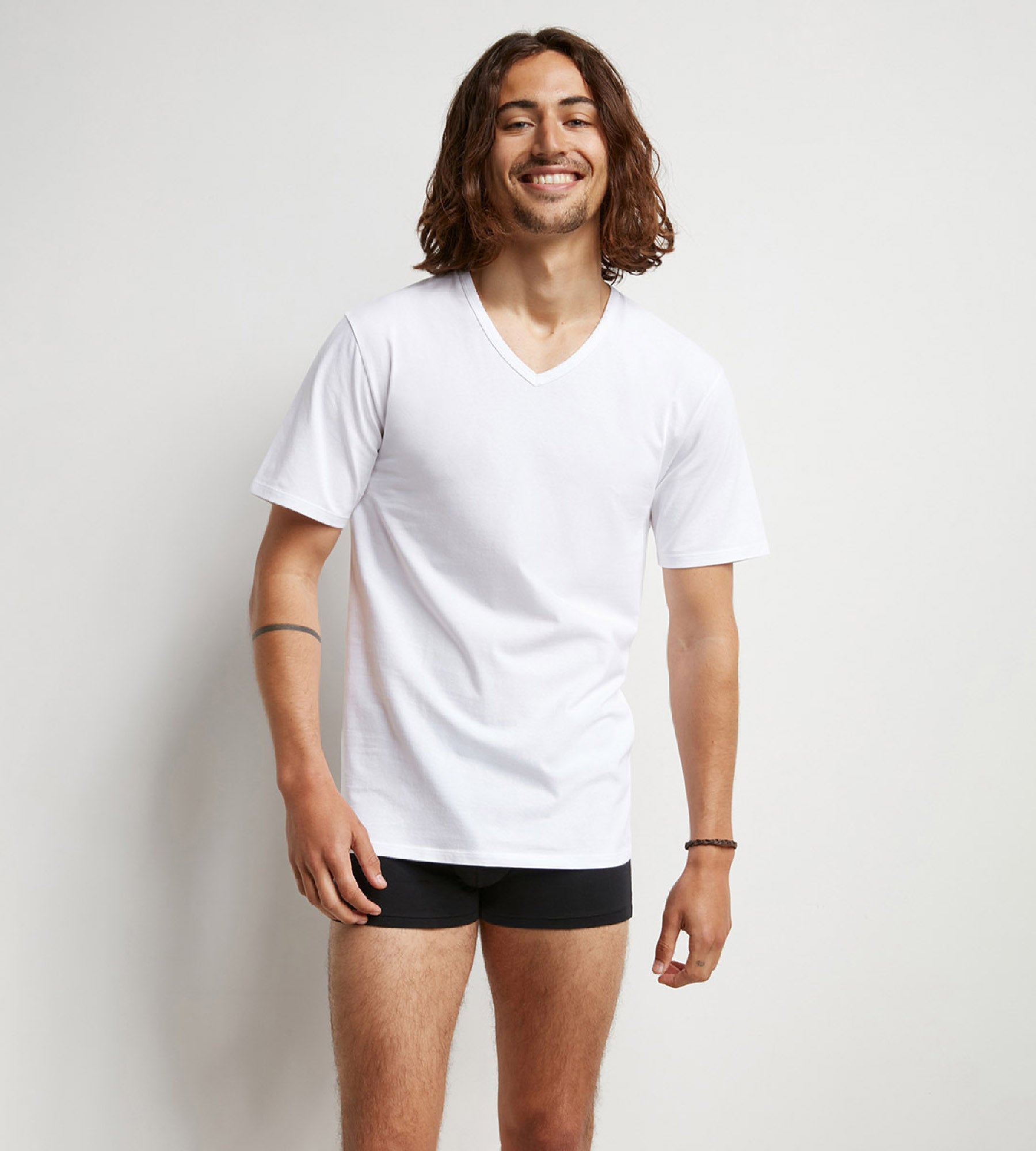 Face all situations with confidence thanks to our pack of 2 Dim Sport white V-neck men’s t-shirts in thermoregulating stretch cotton that always keeps you dry!