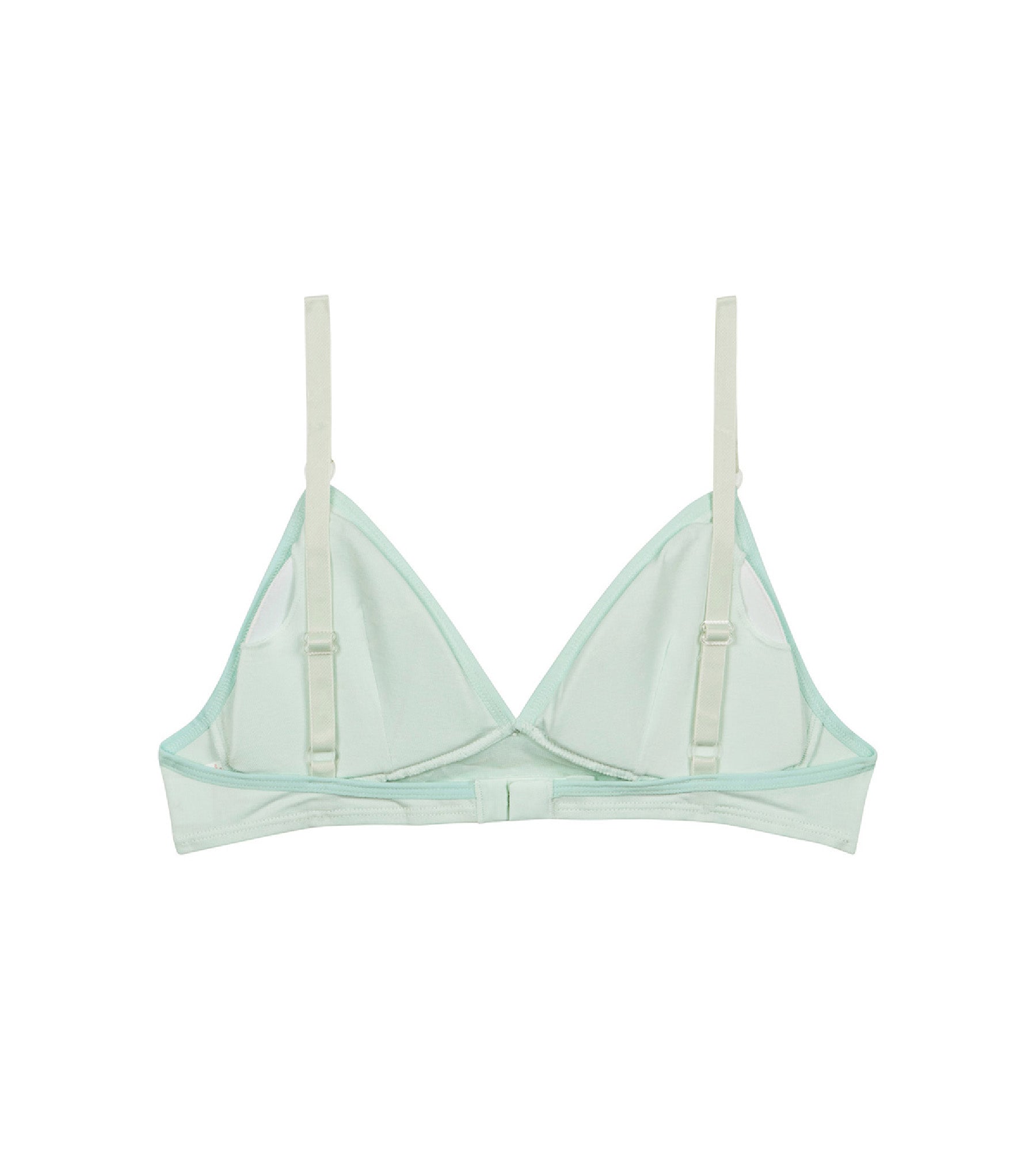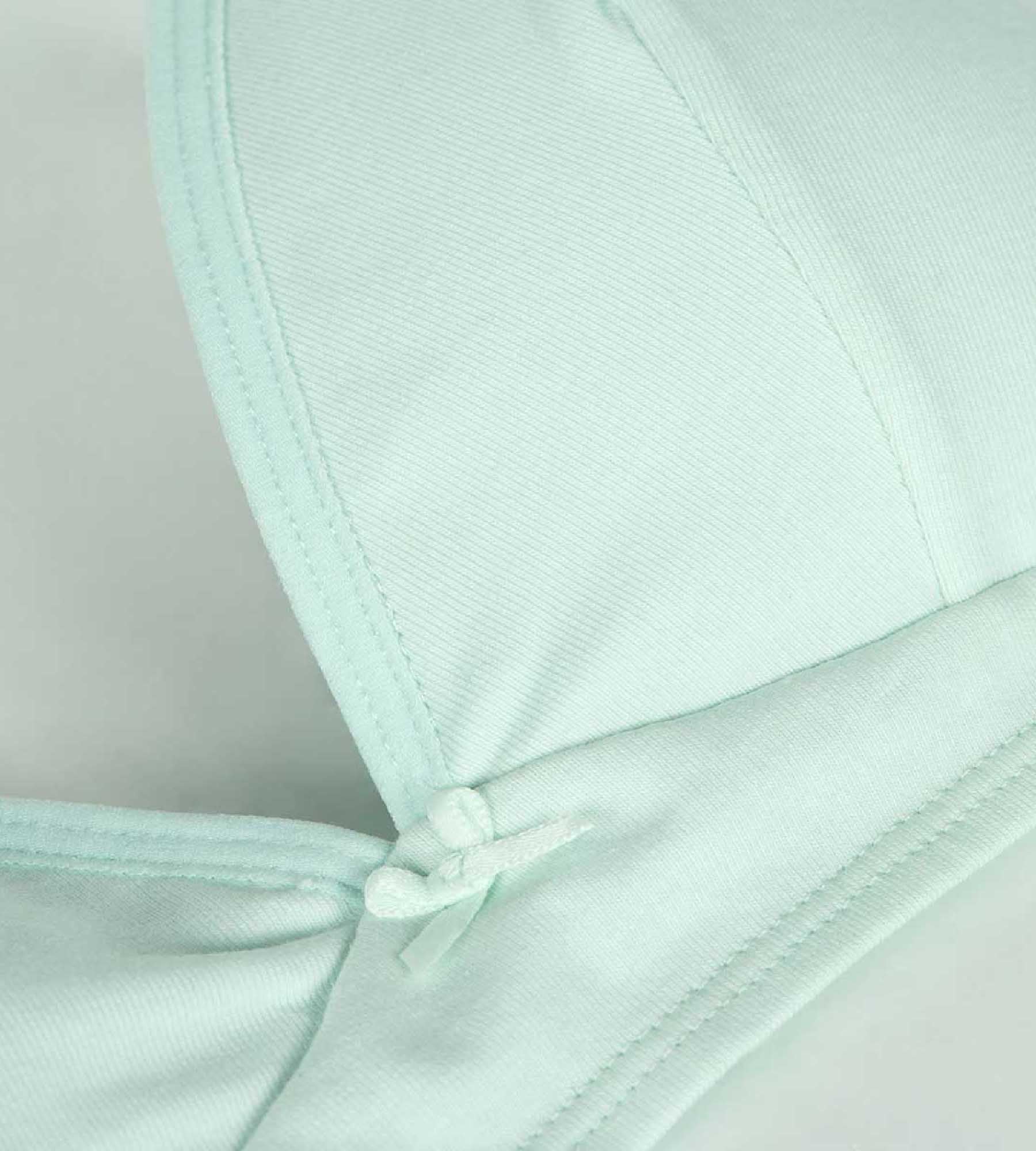 Cocooning mode activated with the Dim Skin Care wireless adjustable triangle bra in Pastel Blue organic cotton, very soft!