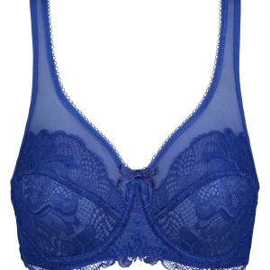 Fall for the special support and ultra refined design of our Generous Essentiel Stellar Blue floral lace full cup bra!