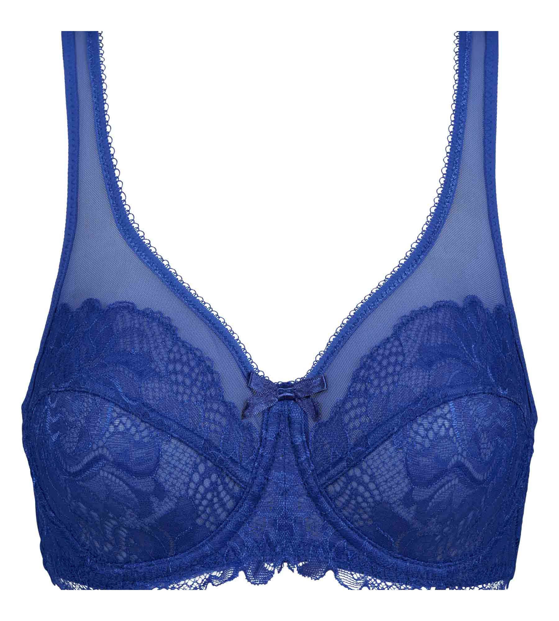 Designed to support and beautify all breasts, even the most generous, our Generous Essentiel Full Cup Bras with deep underwires, anatomical back and wide straps, accompany you every day, without constraint! And because Dim doesn’t compromise on style, your Generous bra is dressed in divinely seductive Stellar Blue floral lace and tulle! For a celestial and electric adornment, complete your basket with the matching Generous Essentiel blue lace knickers!