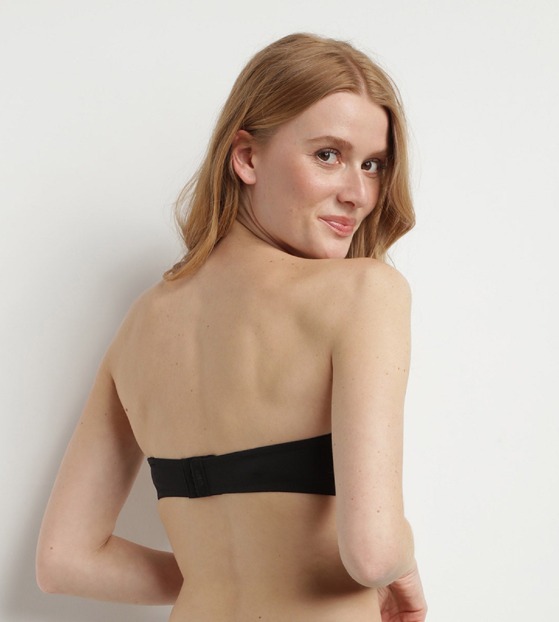 Take your InvisiFree strapless and non wired InvisiFree bra under a bustier top or a pretty sleeveless dress! Combined with shoulders off outfilts, it enhances your bust by giving it roundness and an incomparable support. Thanks to its Comfort Fit structure, a integrated basque at the front makes it possible to free oneself from the frames for your greatest pleasure! You will fall for this invisible lingerie with a silky touch made of microfibre. We are convinced, are you?