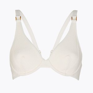 The Vela Glam Smoke wired bra in waffle microfiber offers the perfect balance of comfort, support, and feminine design. The wired cups with a voile shape and side seams naturally sculpt the bust, ensuring optimal support and a harmonious silhouette. The wooden-effect accessory detail on the straps adds a distinctive touch, bringing originality to your summer look.