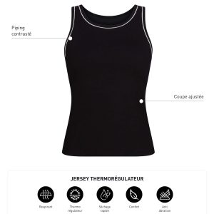 Discover the Dim Move Black women’s sports top, with its thermo-regulating fabric for comfortable training!