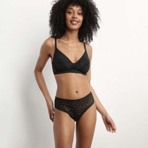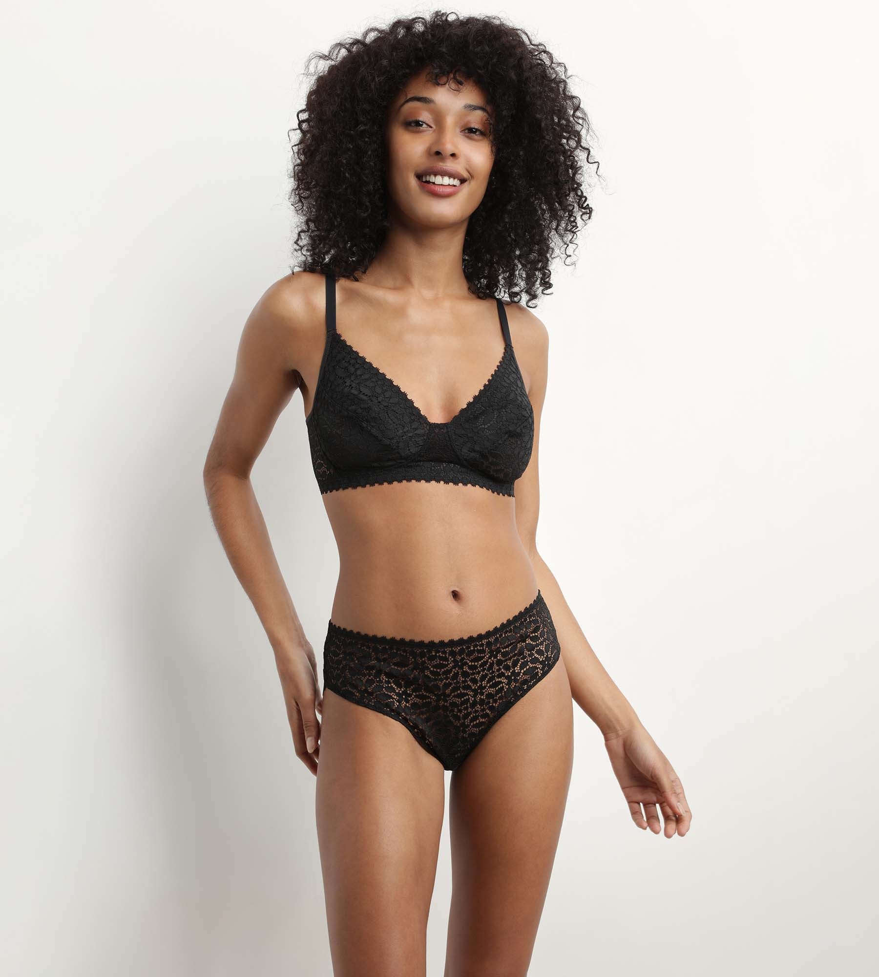 Triangle bra Wireless floral pattern in Black Daily Lace