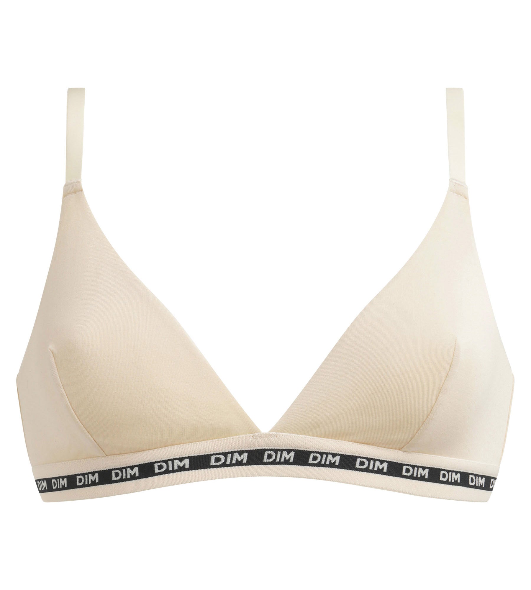 Designed without a shell and with a soft basque, our Dim Icon Essentiel triangle bras can be worn every day with ease!We love the Ivory Beige version of this wire-free bra, with black elastic by Dim, which highlights the bust with character.