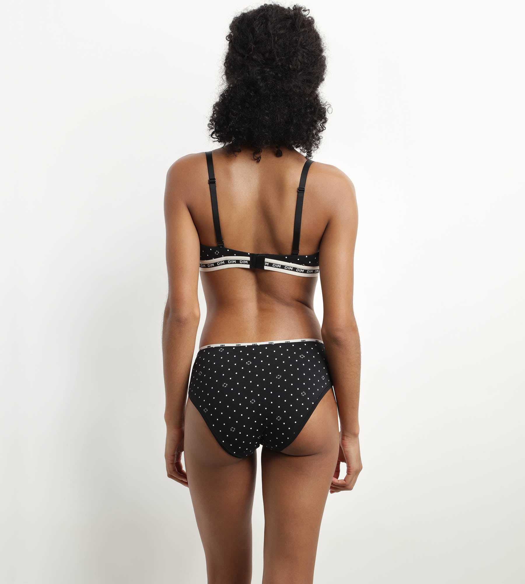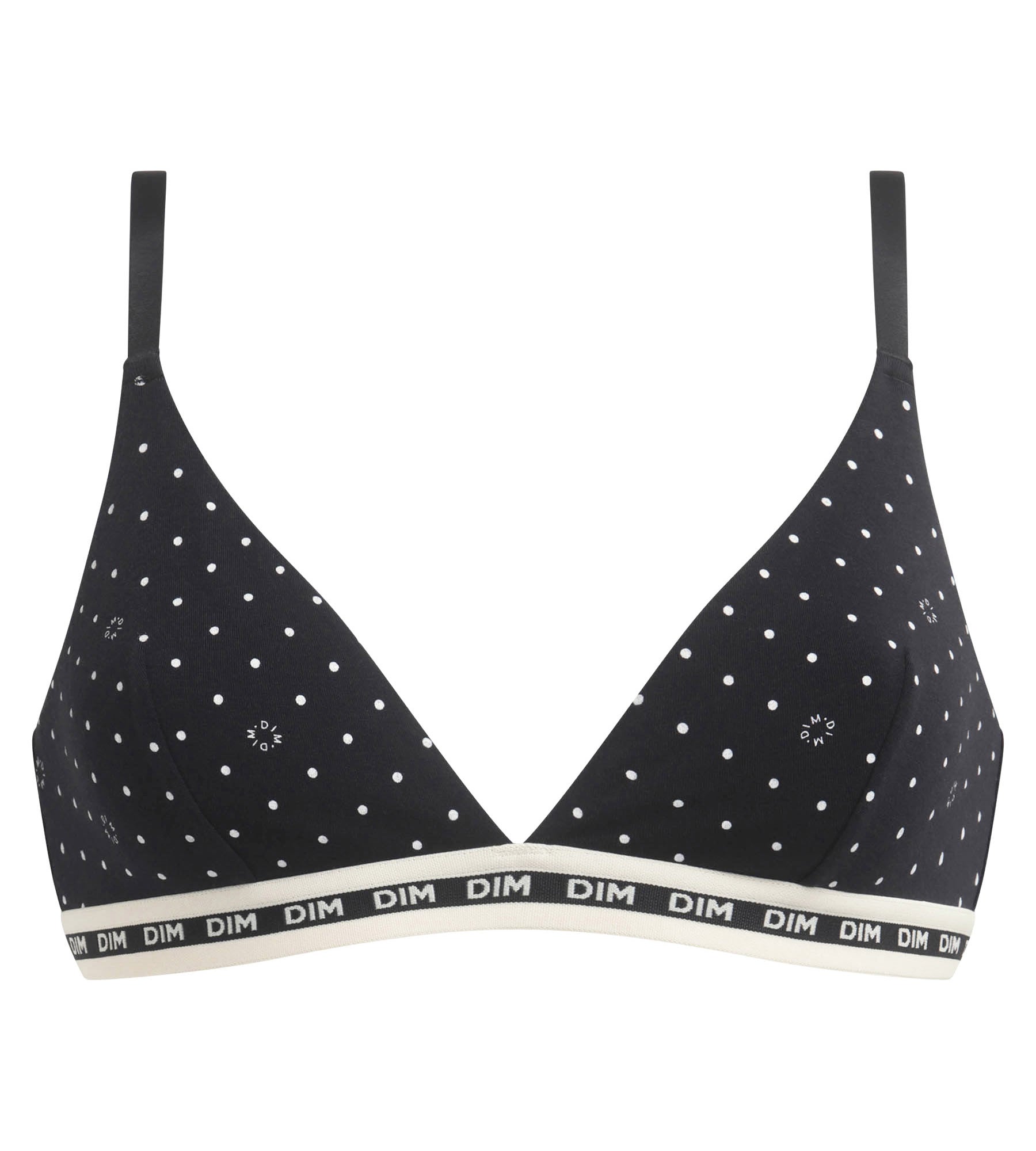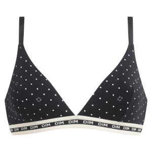 Dim revisits the iconic polka dot pattern with this Dim Icon Essentiel wireless triangle bra in Black microfibre!