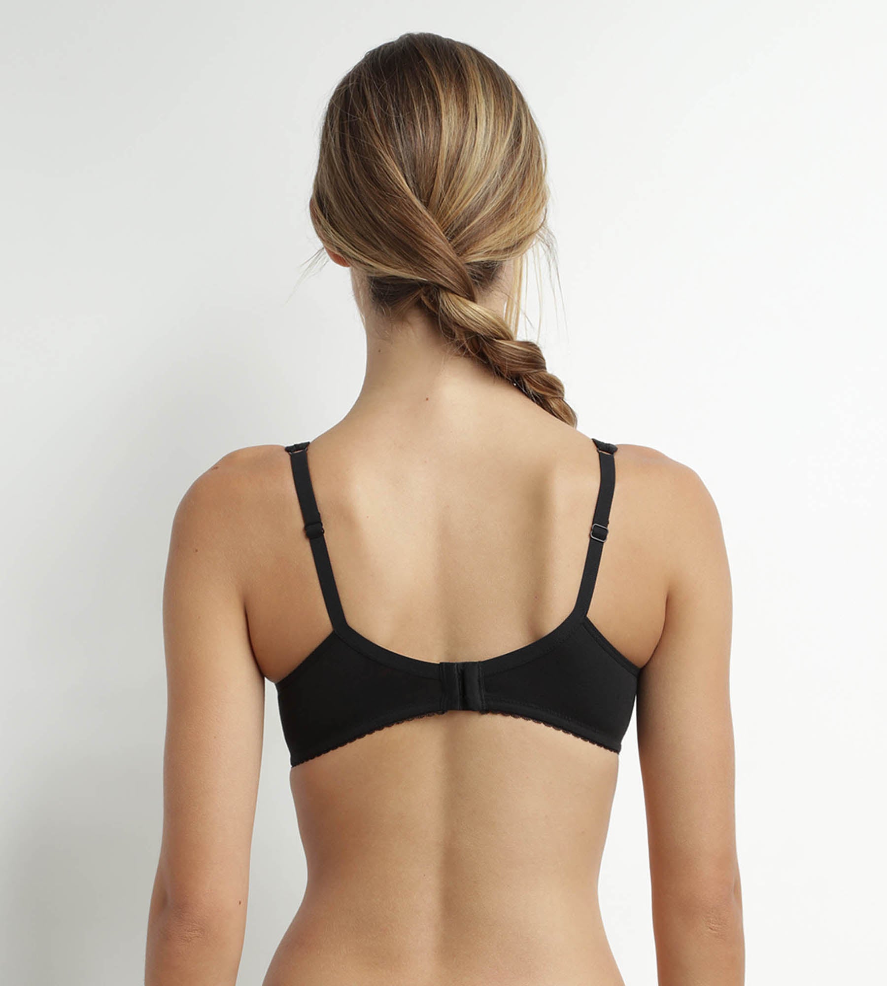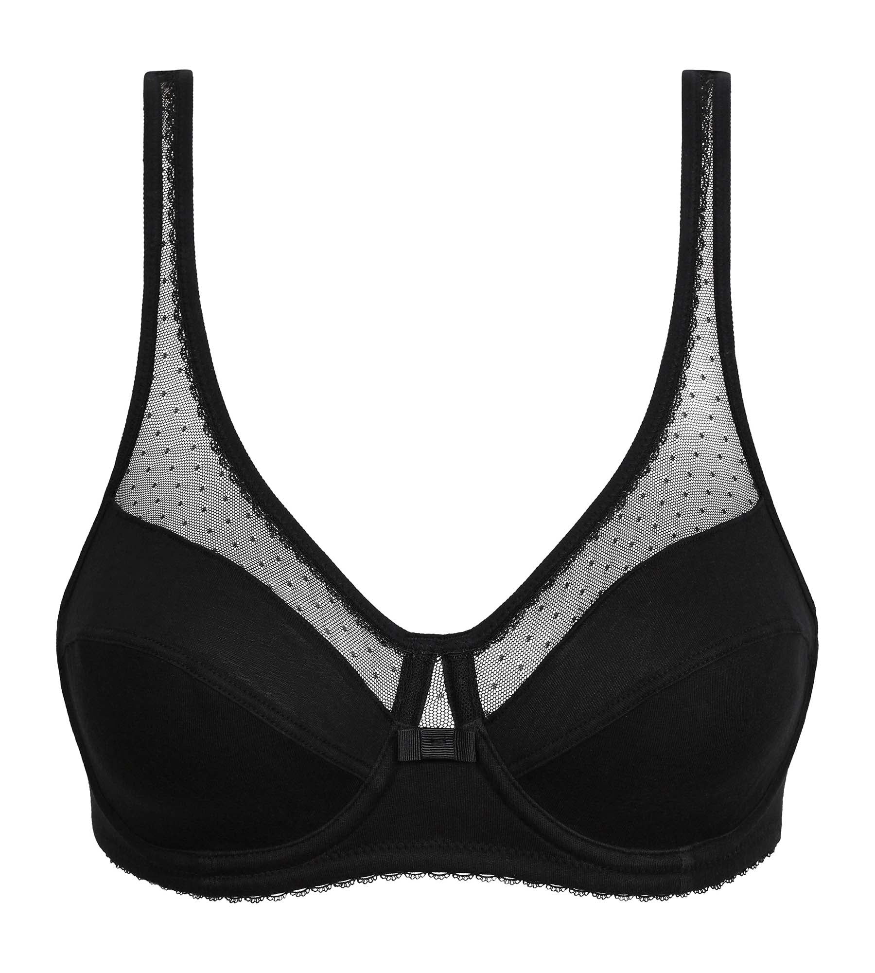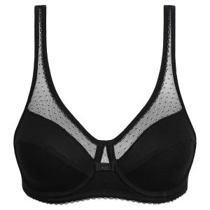 Embrace the iconic style and optimal comfort of the Generous Coton Bio Noir underwired bra with feathered neckline!
