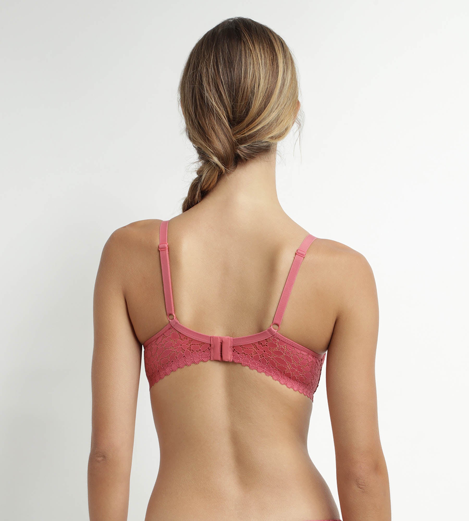 Let yourself be charmed by the Rose Satin Daily Dentelle interlocking bra and its delicate square neckline!