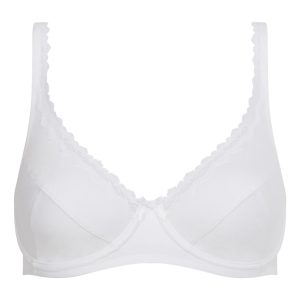 - Cotton and lace bra with a structured cup for comfort and reliable support