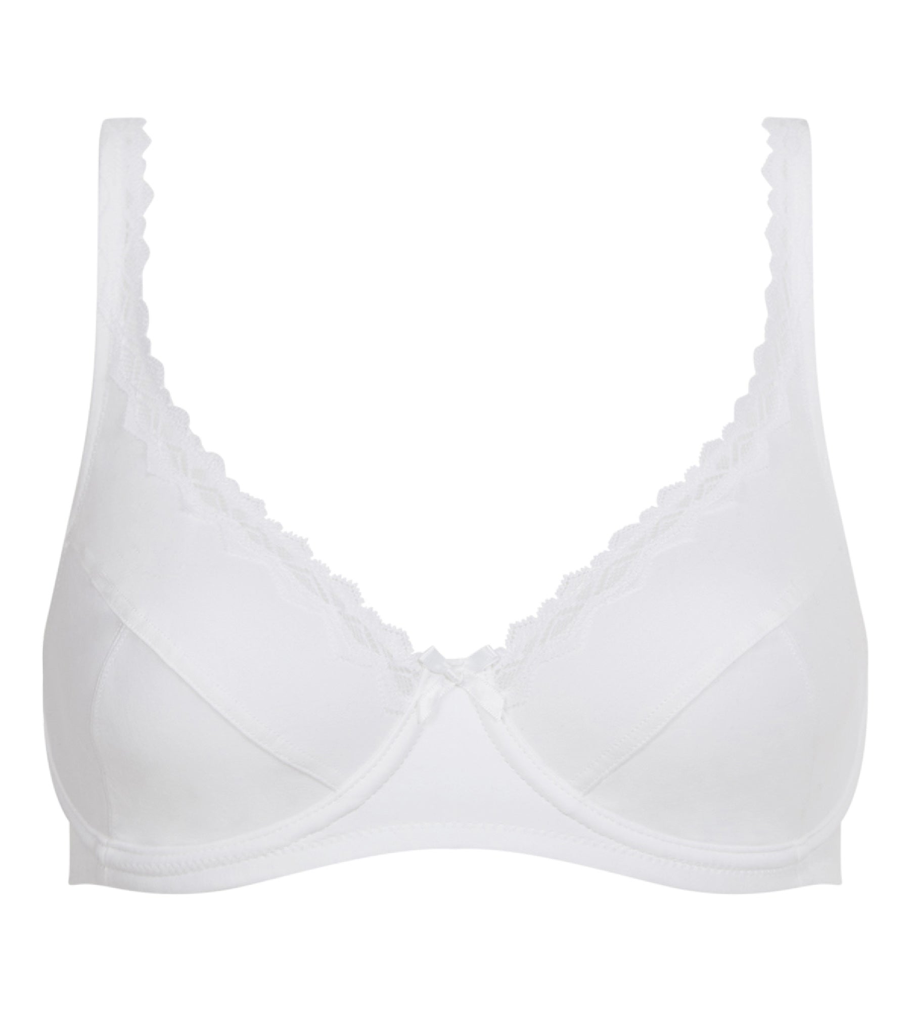- Cotton and lace bra with a structured cup for comfort and reliable support
