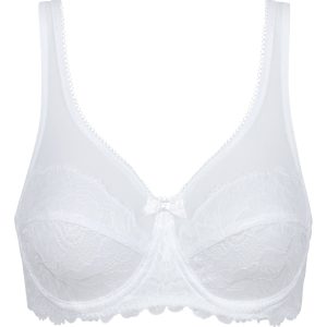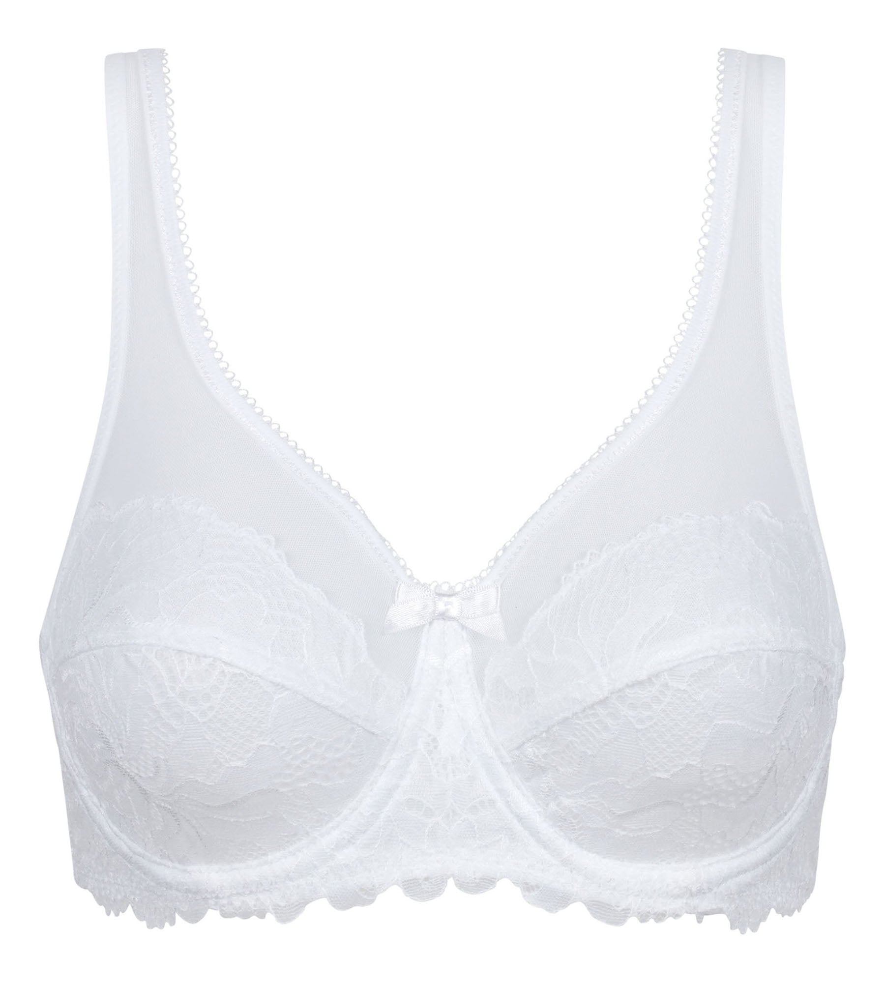 The perfect blend of romance and extreme femininity; be seduced by this combination of floral lace and lightweight microfiber that, through its transparency, shows off a rounded, perfectly supported bust. Thanks to its underwiring and full cup shape, the Generous Essentiel bra centres and supports your chest for everyday wear. The white color looks natural while accentuating your skin tone. An ode to Dim’s iconic style, the Generous Classic!