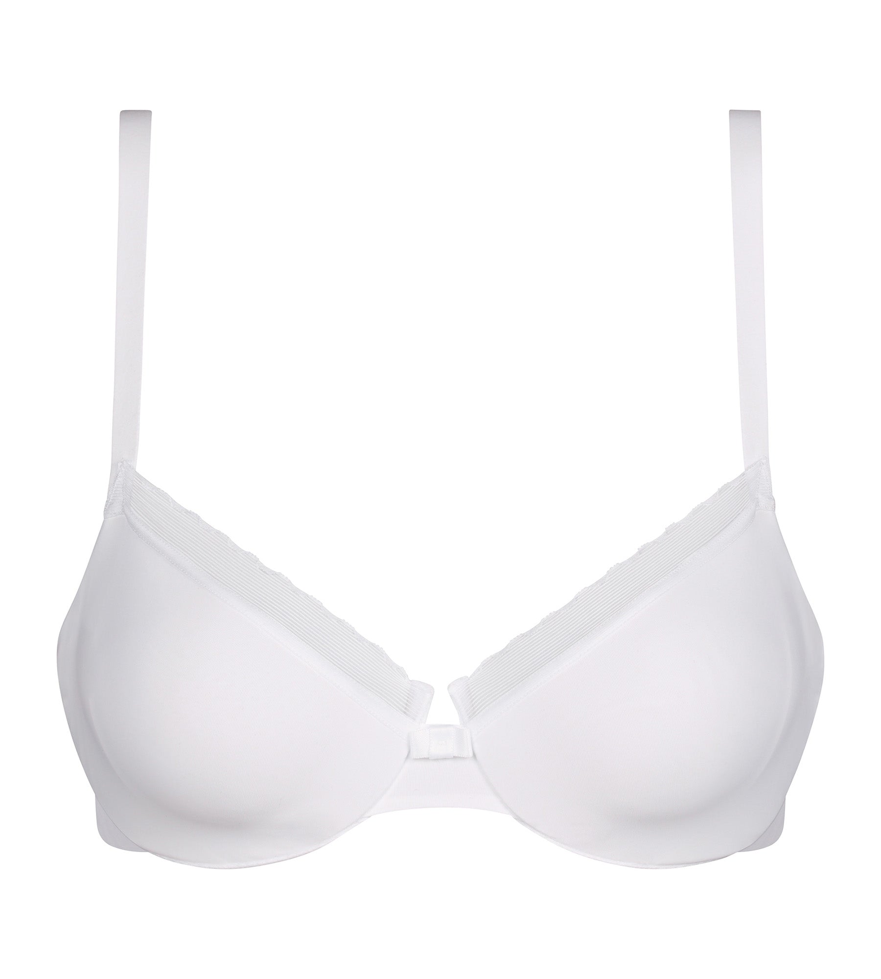 Opt for comfort and discretion with this Dim Daily Confort push-on bra, in White microfiber and tulle!