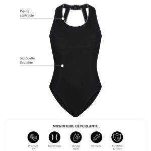Aesthetic and practical, the Dim Move 1-piece women’s swimming costume in black microfibre will boost your swimming sessions!