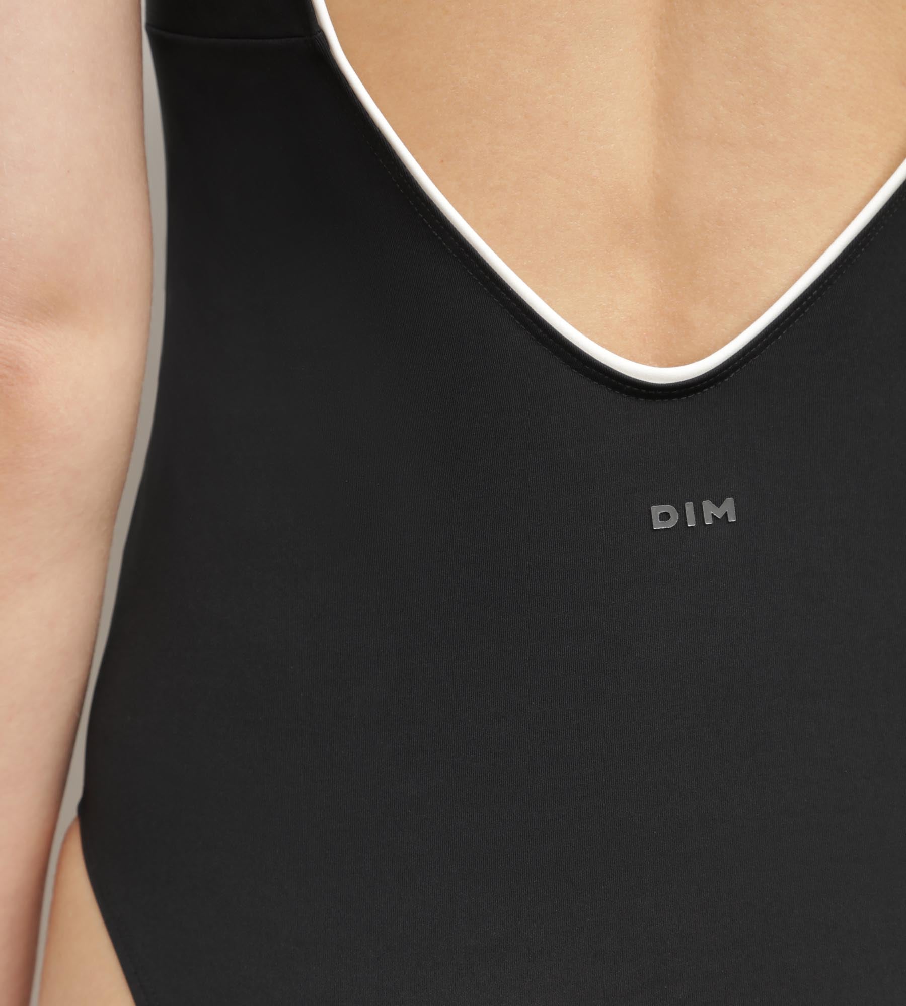 Look slim and athletic in the Dim Move women’s 1-piece swimming costume in second-skin microfibre! We love the shaping and flattering look of this women’s swimming costume It has a supple fabric with structuring seams, and a couture look with a white piped back. For your daily indoor or outdoor swims, you won’t be able to do without this versatile piece that protects against UV rays, resists chlorine and dries in a flash!