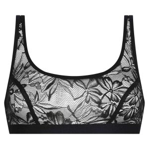 Catch the feminine yet sporty design of this bra Mod by Dim ein refined black lace and casual details! Designed to enhance, shape and support the breasts with voluptuous comfort, the bra Mod by Dim is constructed without a cup, without underwiring and with very elegant “princess” seams. We love the sheer palm fronds and exotic flowers, which dress up your décolletage with refinement.