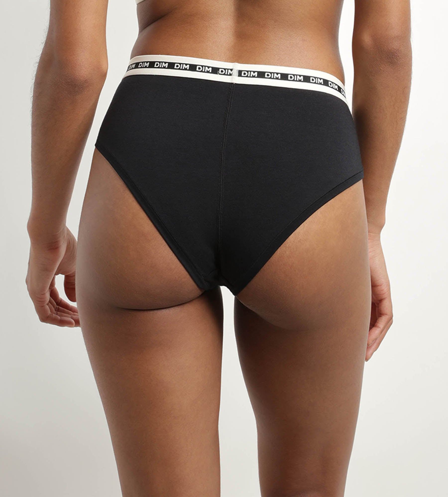 Constructed with ultra-soft plain black modal cotton and light, your Dim Icon shorty is very enveloping, highlights your hips with confidence and above all, with ease!We love the Beige waistband, punctuated by a black stripe by Dim: your cotton shorty is a rather versatile basic, but undeniably modern. Discover the Dim Icon Essentiel collection composed of Women’s knickers & Underwear, Wireless Bras, Women’s Brassieres and wear a timeless style!