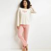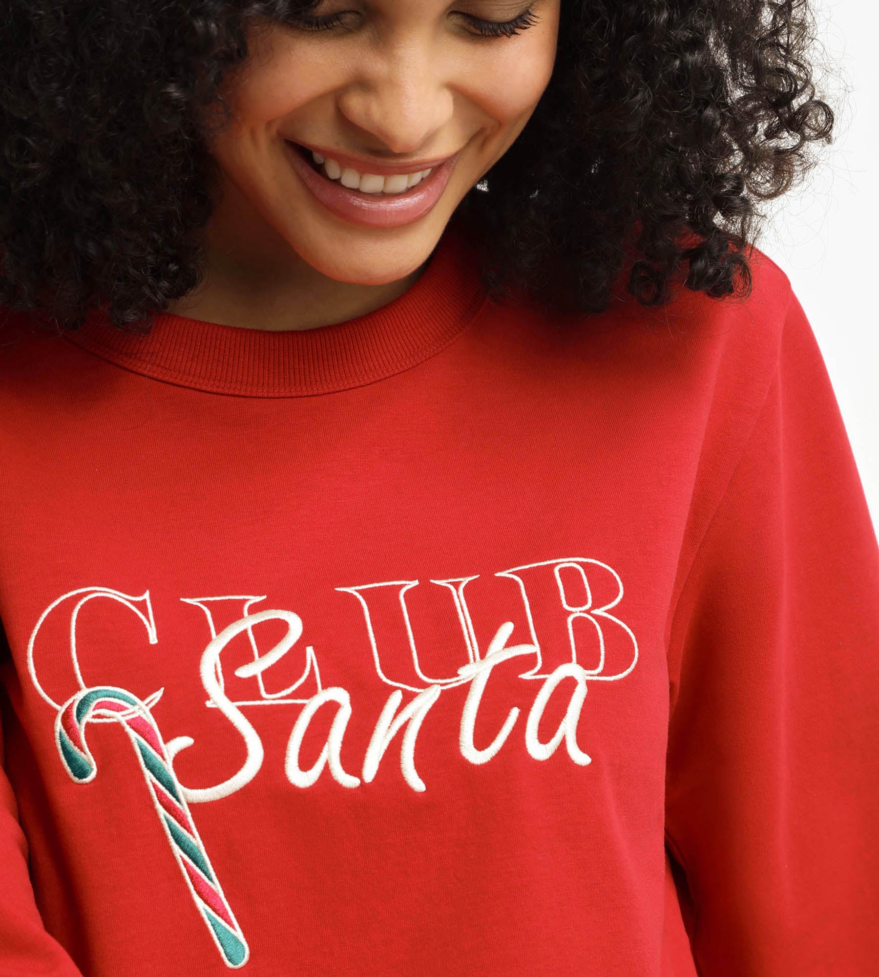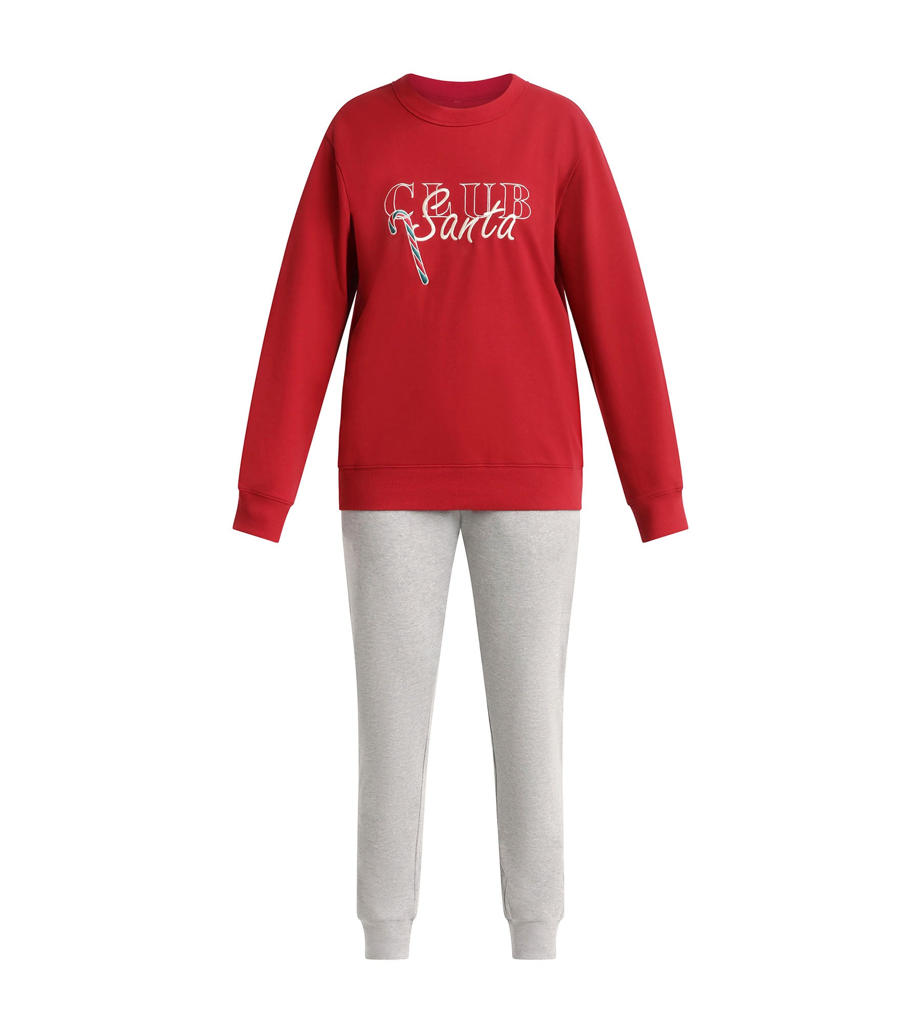 These women’s pyjamas from Dim combine comfort and good humour in a duo of soft, vitamin-packed shades.The long-sleeved top in bright red features an embroidered “Club Santa” message that sets the tone for cocooning evenings.The jogger trousers in mottled grey complete the look with simplicity.With its soft fabric and practical finishes, this Dim Family model is a must-have for cosy yet fun indoor outfits.